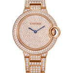 33 mm 18K pink gold case, fluted crown set with a sapphire cabochon, sapphire crystal, dial set with 828 brilliant-cut diamonds totaling 8.23 carats, automatic movement, 18K rose gold dial and bracelet set with 828 brilliant-cut diamonds totaling 8.23 carats. Water resistant to 3 bar (approx 30 meters/100 feet).
