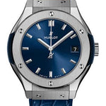 Hublot Classic Fusion Titanium Blue Watch - 33 mm - Blue Dial - Blue Rubber and Leather Strap-581.NX.7170.LR