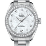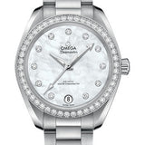 Omega Seamaster Aqua Terra 150M Co-Axial Master Chronometer Watch - 34 mm Steel Case - Diamond-Set Bezel - White Mother-Of-Pearl Diamond Dial - 220.15.34.20.55.001