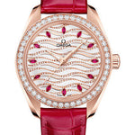 Omega Seamaster Aqua Terra 150M Omega Co-Axial Master Chronometer - 34 mm Sedna Gold Case - Diamond Bezel - White Diamond Wave Ruby Dial - Glossy Red Leather Strap - 220.58.34.20.99.004