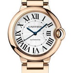 36mm 18K pink gold case, 12.05mm thick, fluted crown set with a blue cabochon-shaped sapphire, sapphire crystal, silvered guilloche' lacquered opaline dial with Roman Numerals and blued-steel sword-shaped hands, self-winding movement, 18K pink gold bracelet. Water resistant to 30 meters.