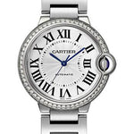 36mm steel case, 12mm thick, fluted crown with a synthetic cabochon-shaped spinel, steel bezel with 54 brilliant-cut diamonds totalling 0.78 carats, mineral crystal, silvered dial with sunray effect, automatic movement, steel bracelet with wrist size 180mm. Water resistant to 30 meters.