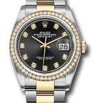 Rolex Steel and Yellow Gold Rolesor Datejust 36 Watch - Diamond Bezel - Black Diamond Dial - Oyster Bracelet - 126283RBR bkdo