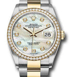 Rolex Steel and Yellow Gold Rolesor Datejust 36 Watch - Diamond Bezel - White Mother-Of-Pearl Diamond Dial - Oyster Bracelet - 126283RBR mdo