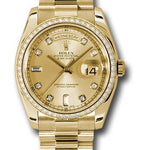 Rolex Yellow Gold Day-Date 36 Watch - Bezel - Champagne Diamond Dial - President Bracelet - 118348 chd