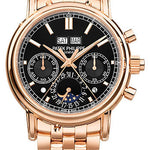 Patek Philippe Grand Complications Split Seconds Chronograph Pertetual Calendar Watch - 40.2mm Rose Gold Case - Black Dial - Rose Gold Bracelet - 5204/1R-001