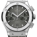 42 mm satin-finished and polished titanium case, satin-finished and polished titanium bezel with 6 H-shaped titanium screws, sapphire crystal with anti-reflective treatment, grey sunray dial, HUB 1153 self-winding movement with chronograph, approximately 42 hours of power reserve, black rubber and alligator strap, stainless steel deployant buckle. Water resistant to 50 meters.