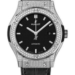 Hublot Classic Fusion Titanium Pave Watch - 42 mm - Black Dial - Black Rubber and Leather Strap-542.NX.1171.LR.1704