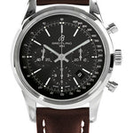 43.00mm stainless steel case, transparent sapphire crystal back, convex sapphire crystal with glareproof treatment on both sides, black dial, selfwinding mechanical Breitling 01 movement with date display, chronograph function, 70 hours of power reserve, brown leather strap with deployant buckle. Water resistant to 100 m (330 ft).