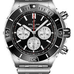 44.0 mm stainless steel case, 14.4 mm thick, transparent sapphire crystal back, screw-locked crown with two gaskets, unidirectional ratcheted rotating bezel, black dial, Breitling 01 (Manufacture) self-winding movement, approximately 70 hrs of power reserve, metal bracelet. Water resistant to 200 m (660 ft).