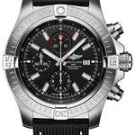 Breitling Super Avenger Chronograph 48 Watch - Stainless Steel - Black Dial - Anthracite Calfskin Leather Strap - Folding Buckle - A13375101B1X2