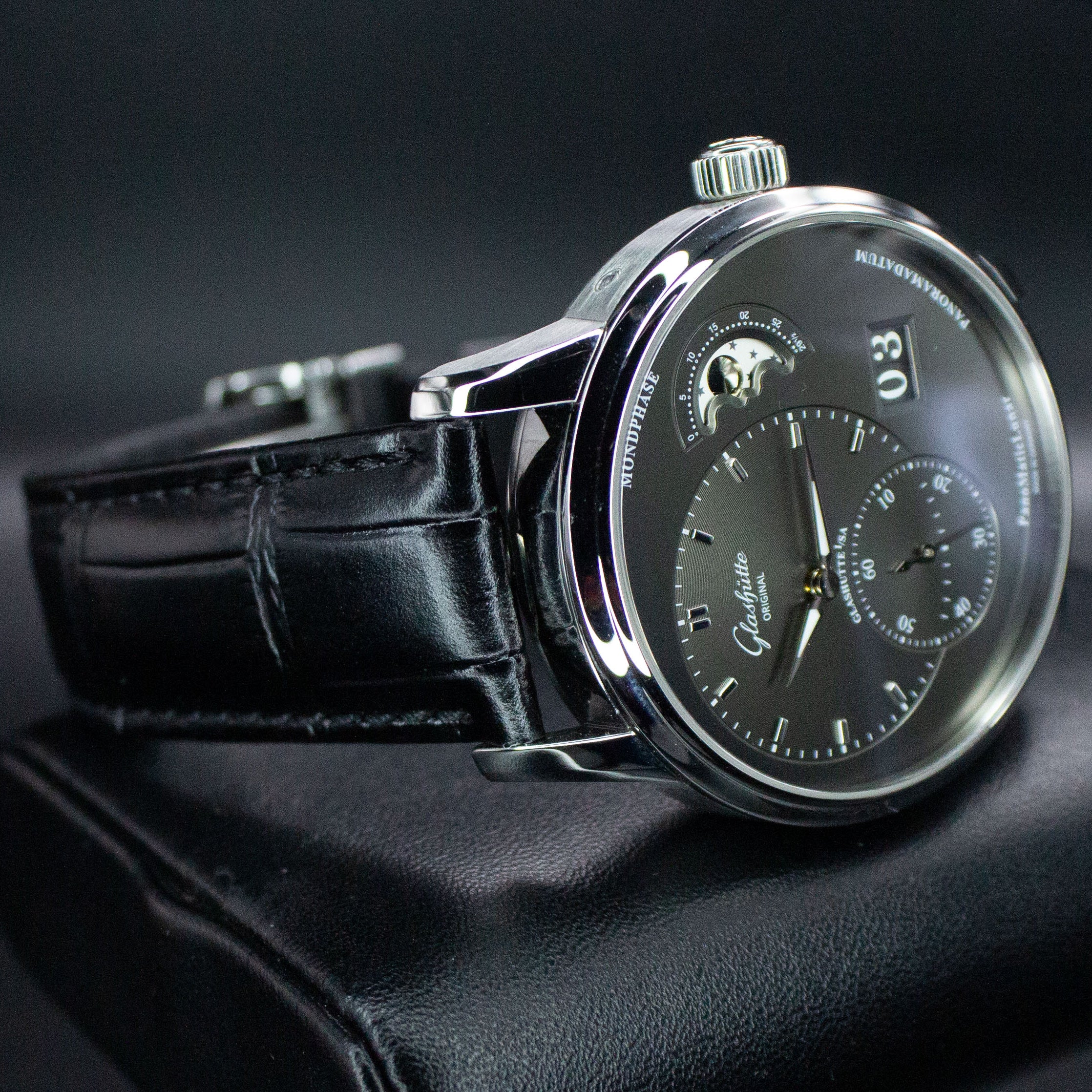 Glashutte Original PanoMaticLunar 1-90-02-43-32-05 40MM Steel Grey Dial Full Set WARRANTY