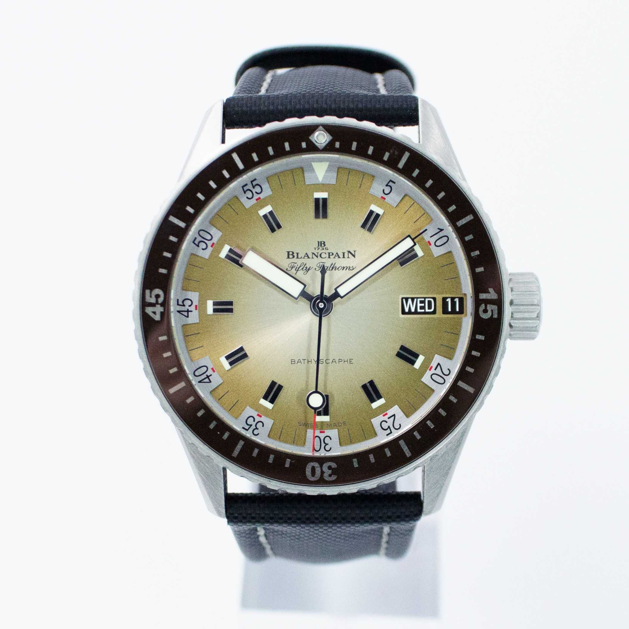 Blancpain Fifty Fathoms Bathyscaphe Day Date Desert Edition 5052-1146-E52A 43MM Brown Dial Full Set WARRANTY