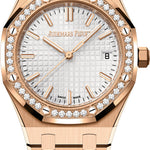 Audemars Piguet Royal Oak 34mm Rose Gold Silver Dial Diamond Bezel Watch - 77451OR.ZZ.1361OR.03