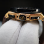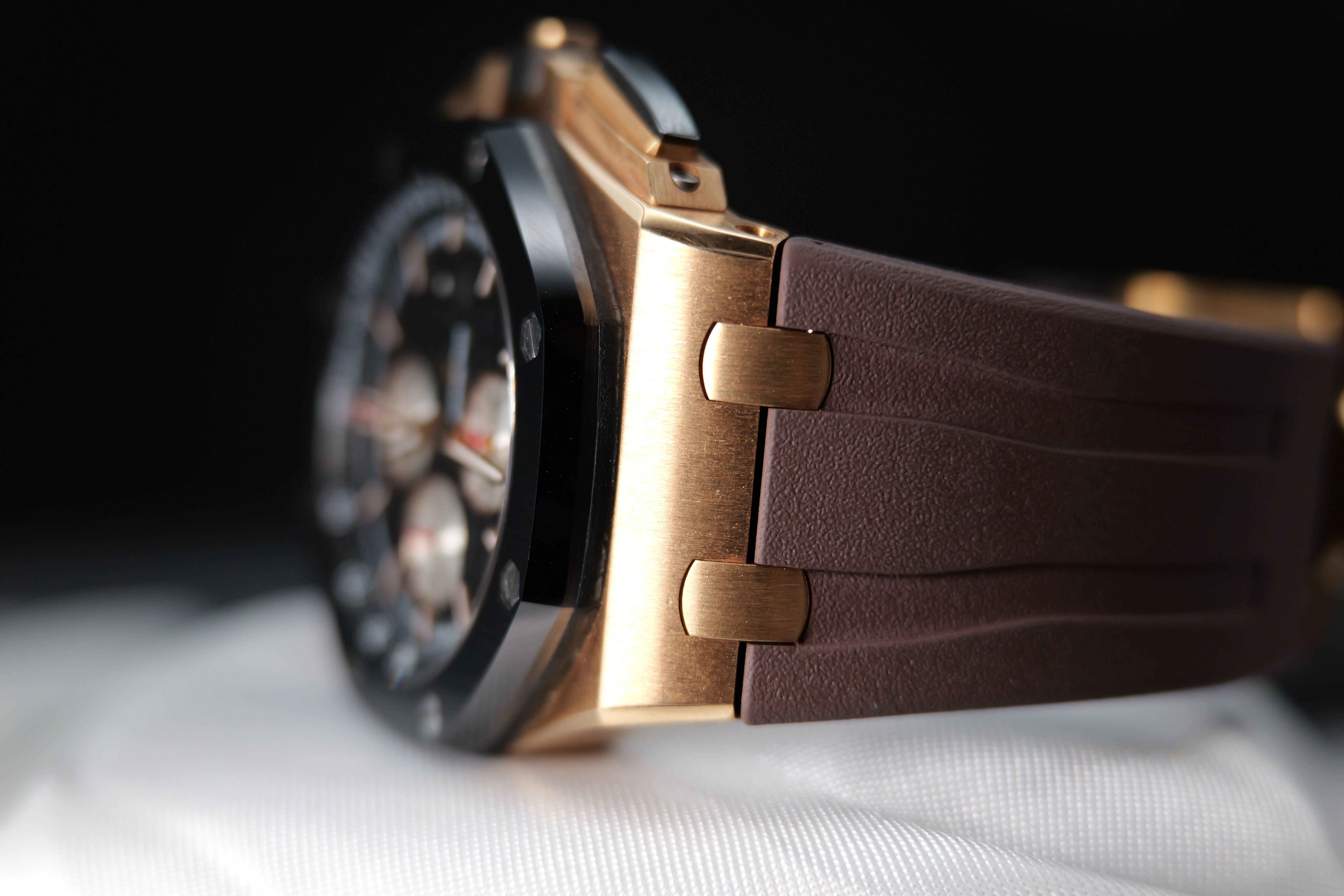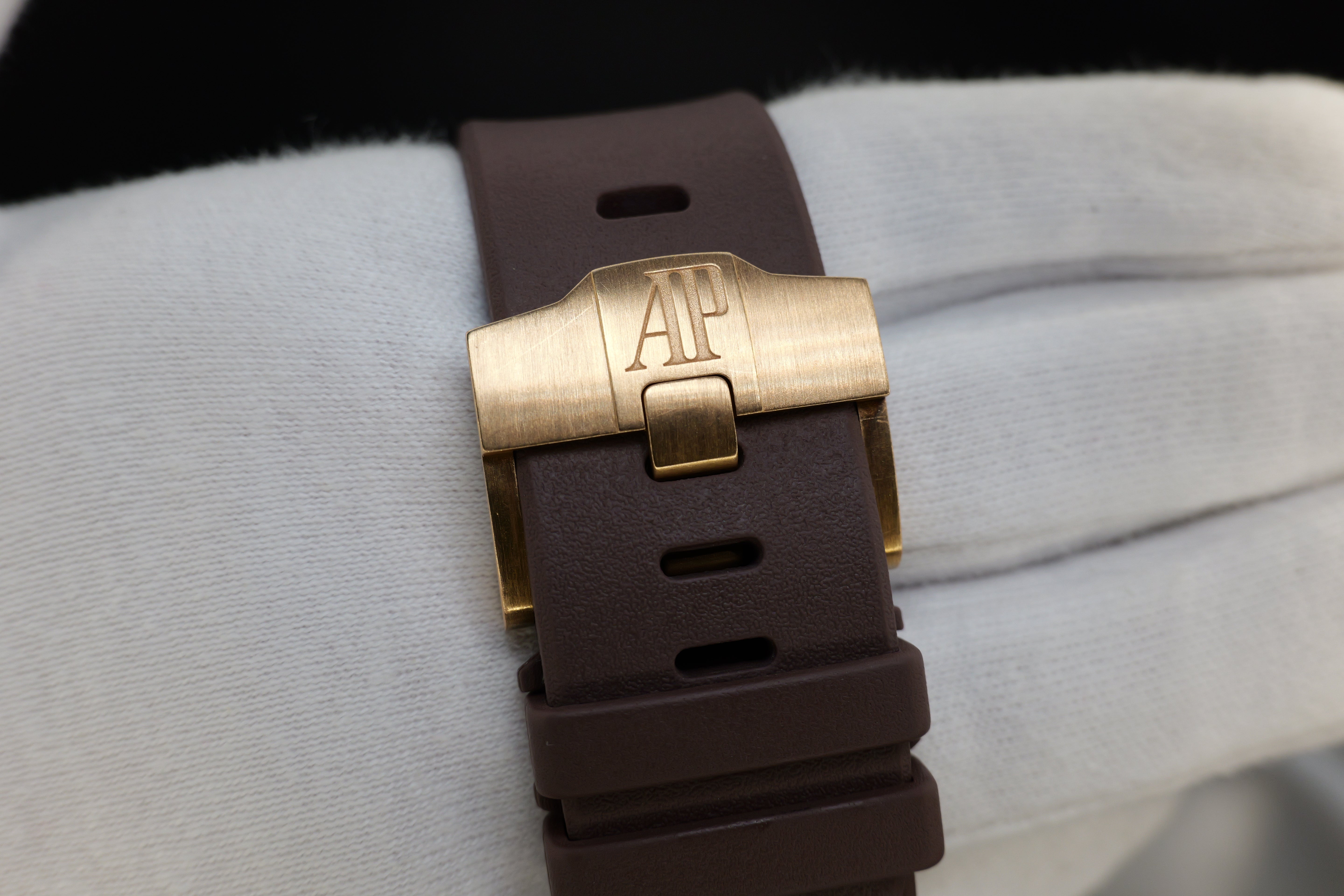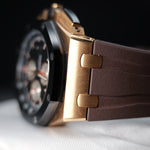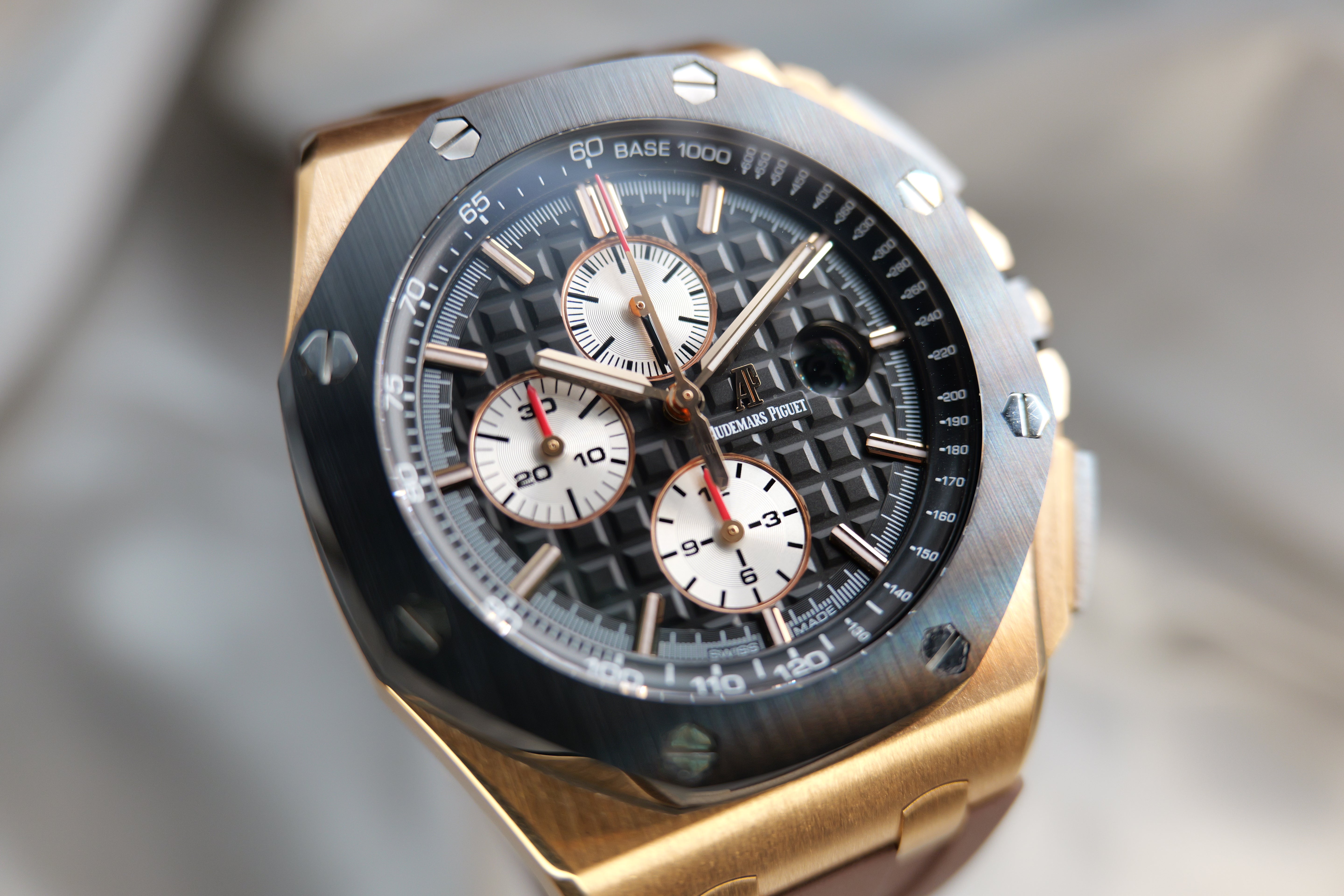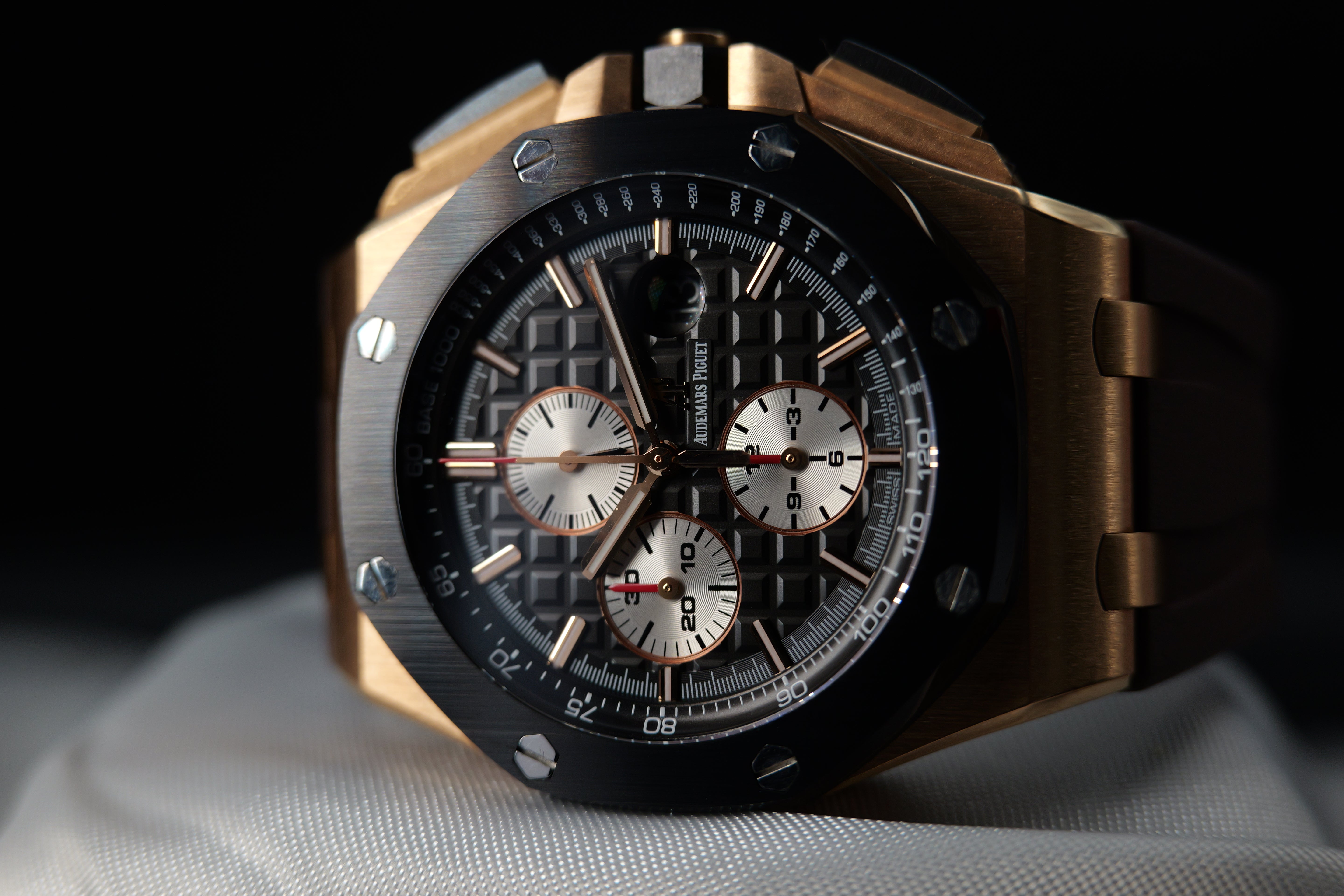 Up for sale is the Audemars Piguet Royal Oak Offshore Chronograph Black Rose Gold Black Ceramic 26401RO.OO.A002CA.01 44mm Black/White Dial with Warranty, authentication, and register certificate book Calibre 3126/3840 book and double-boxed. Watch is dated 2014. MSRP $51,600. It was recently placed on a timegrapher and is running well. All of our watches are photographed under high intensity light with a macro lens. Any flaws will be significantly magnified. The serial numbers have been blurred for privacy. Timepiece is in excellent condition showing no signs of wear. Box shows some signs of wear and functions as expected. Timepiece is located in Indiana and is located in Indiana.