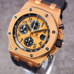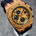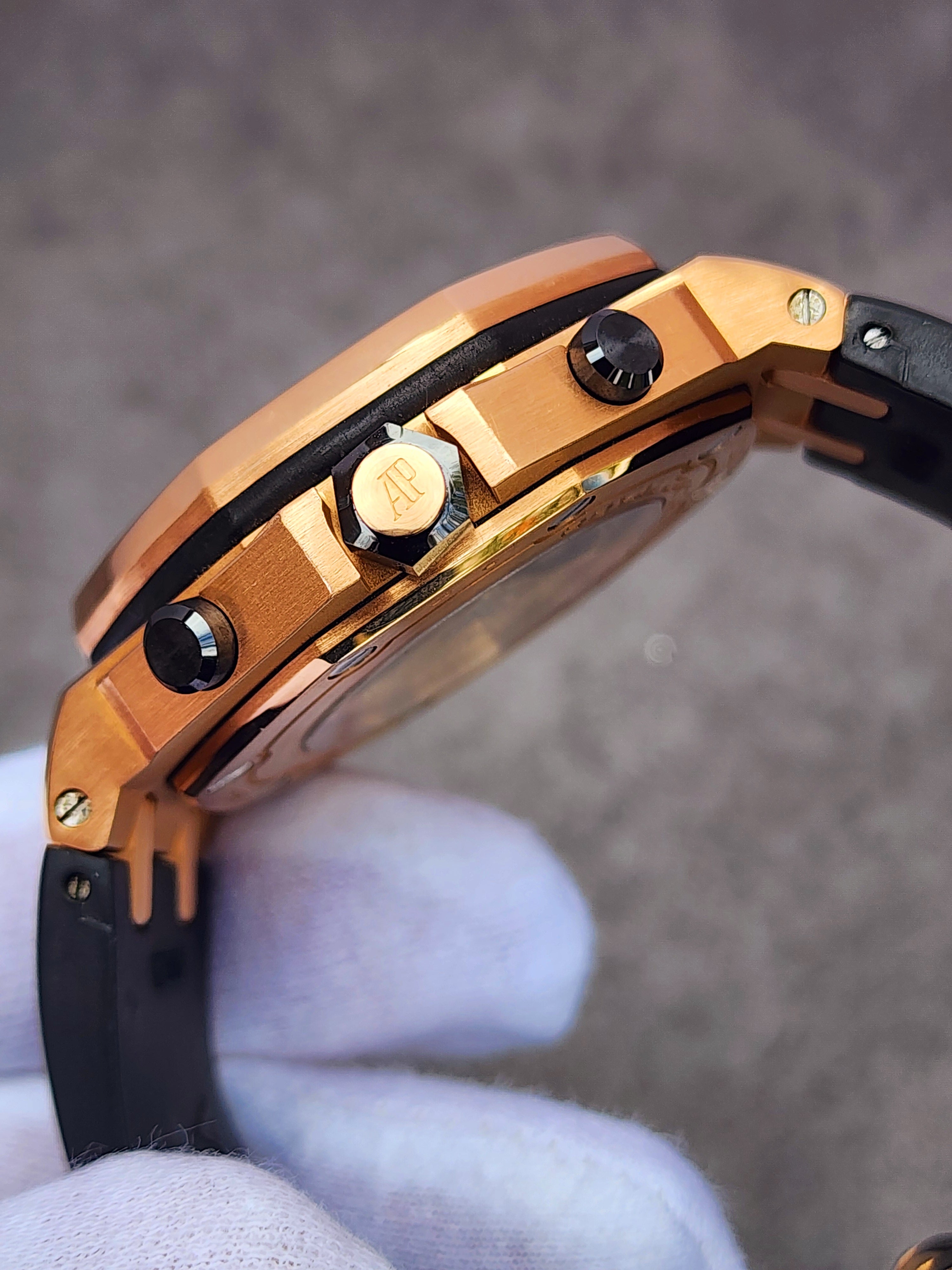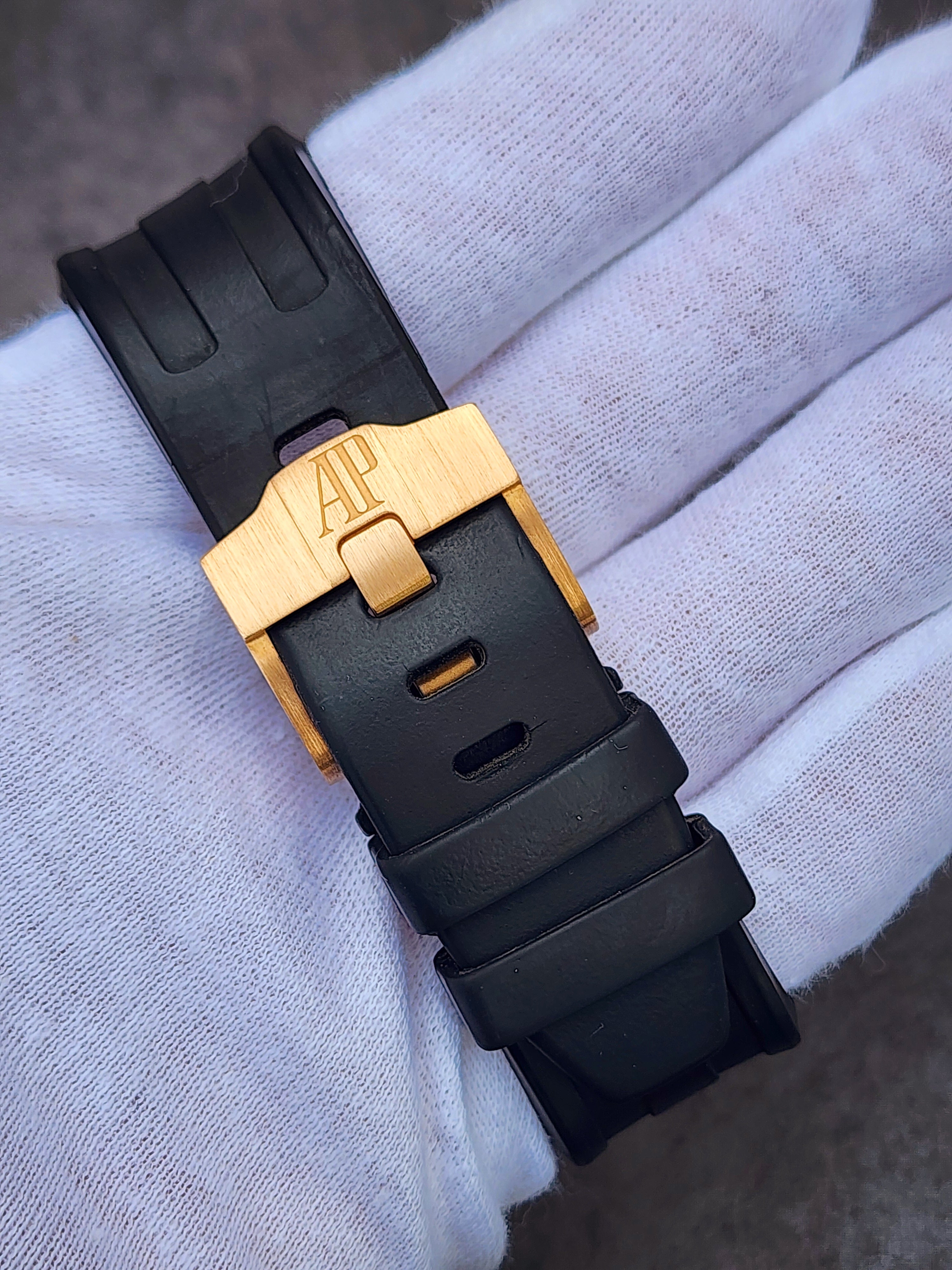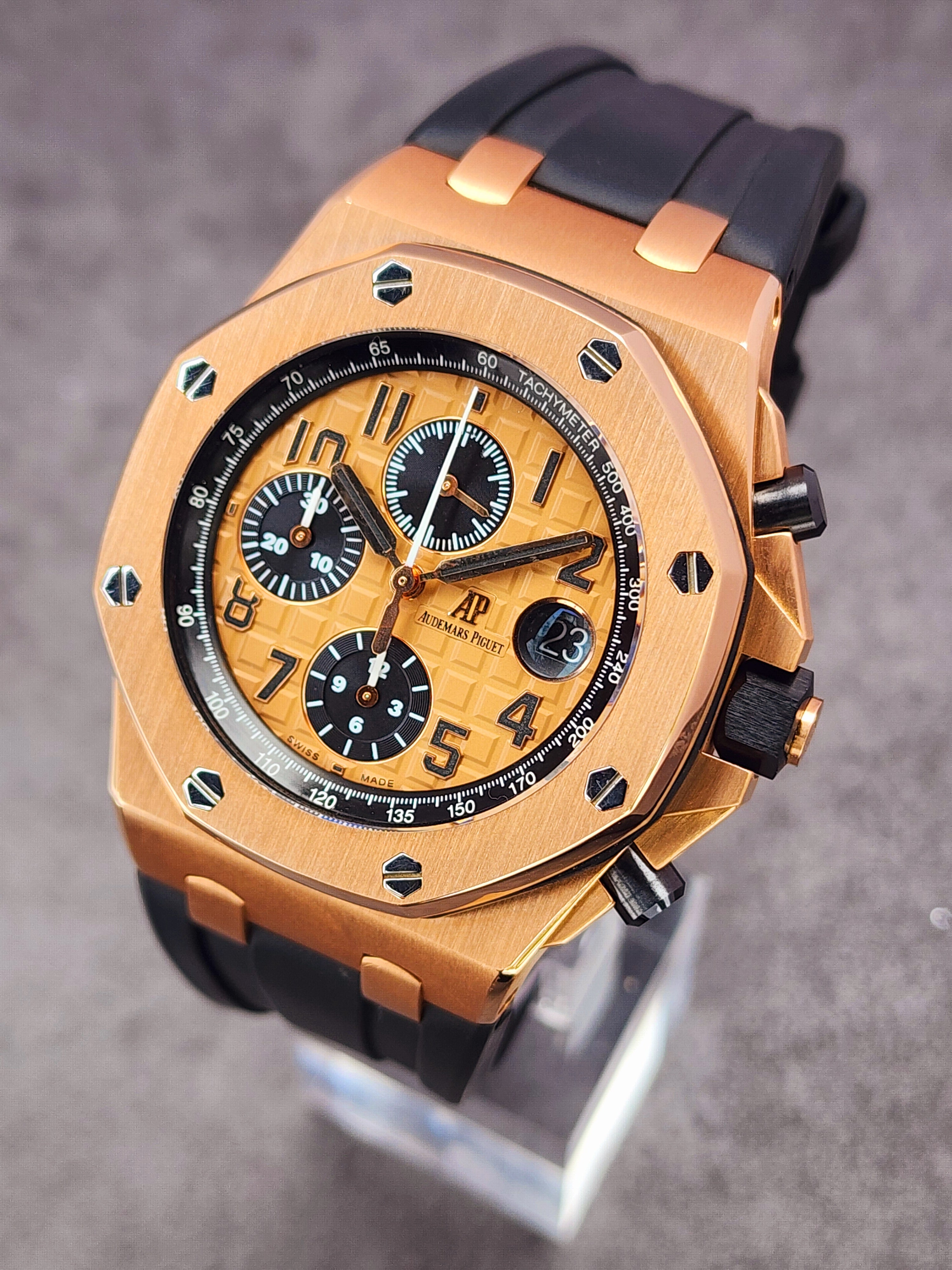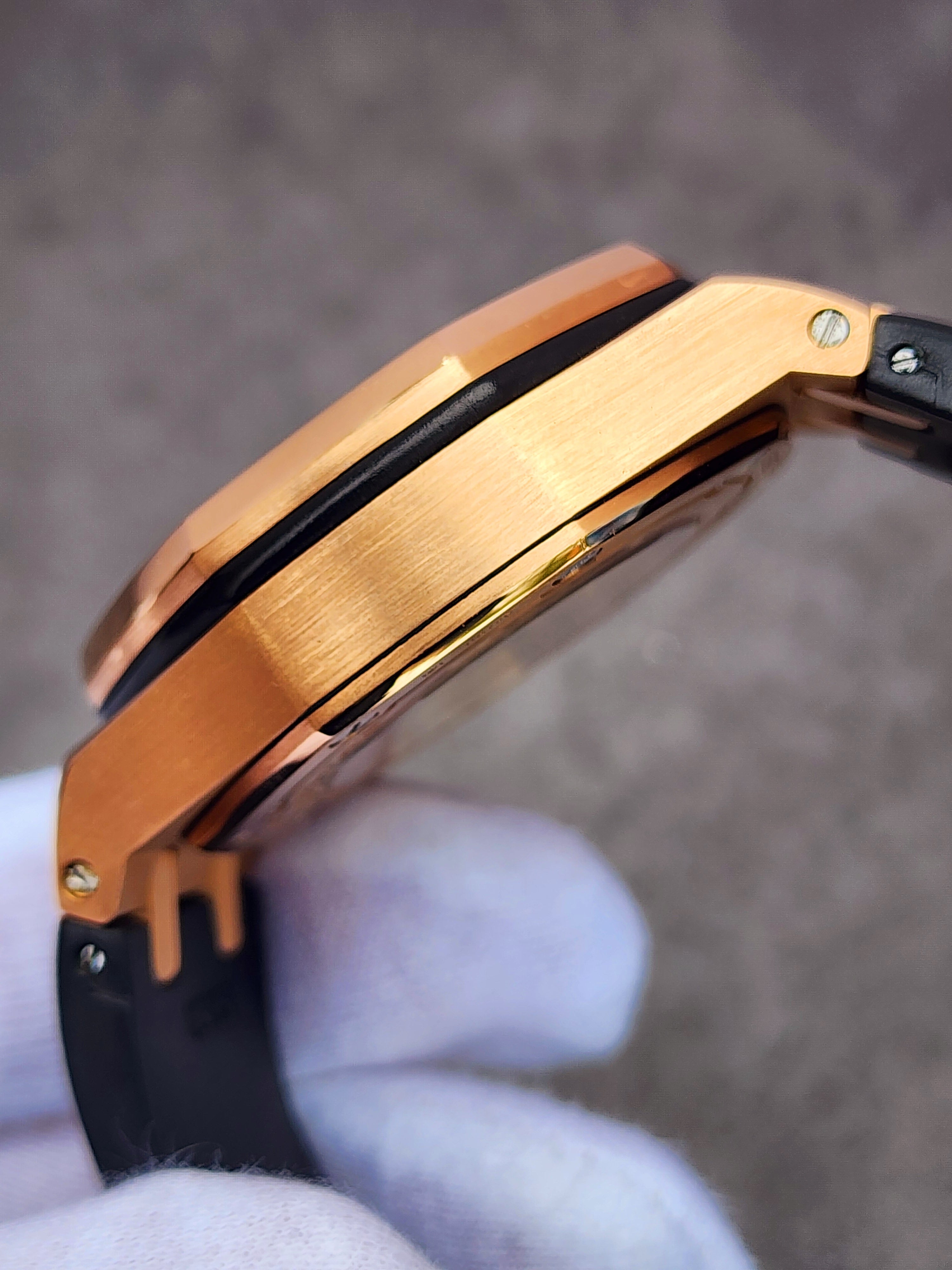 Up for sale is the Audemars Piguet Royal Oak Offshore Chronograph Half Brick 26470OR.OO.A002CR.01 42mm with AP inner- and outer-box, Calibre 3126/3840 Chronograph instructions and Warranty, Authentication, and Register Certificate. Watch is dated 2015. It was recently placed on a timegrapher and is running well. All of our watches are photographed under high intensity light with a macro lens. Any flaws will be significantly magnified. The serial numbers have been blurred for privacy. The inner-box shows some signs of wear and is functioning as expected. This timepiece is in excellent condition with little to no signs of wear and is located in Indiana.