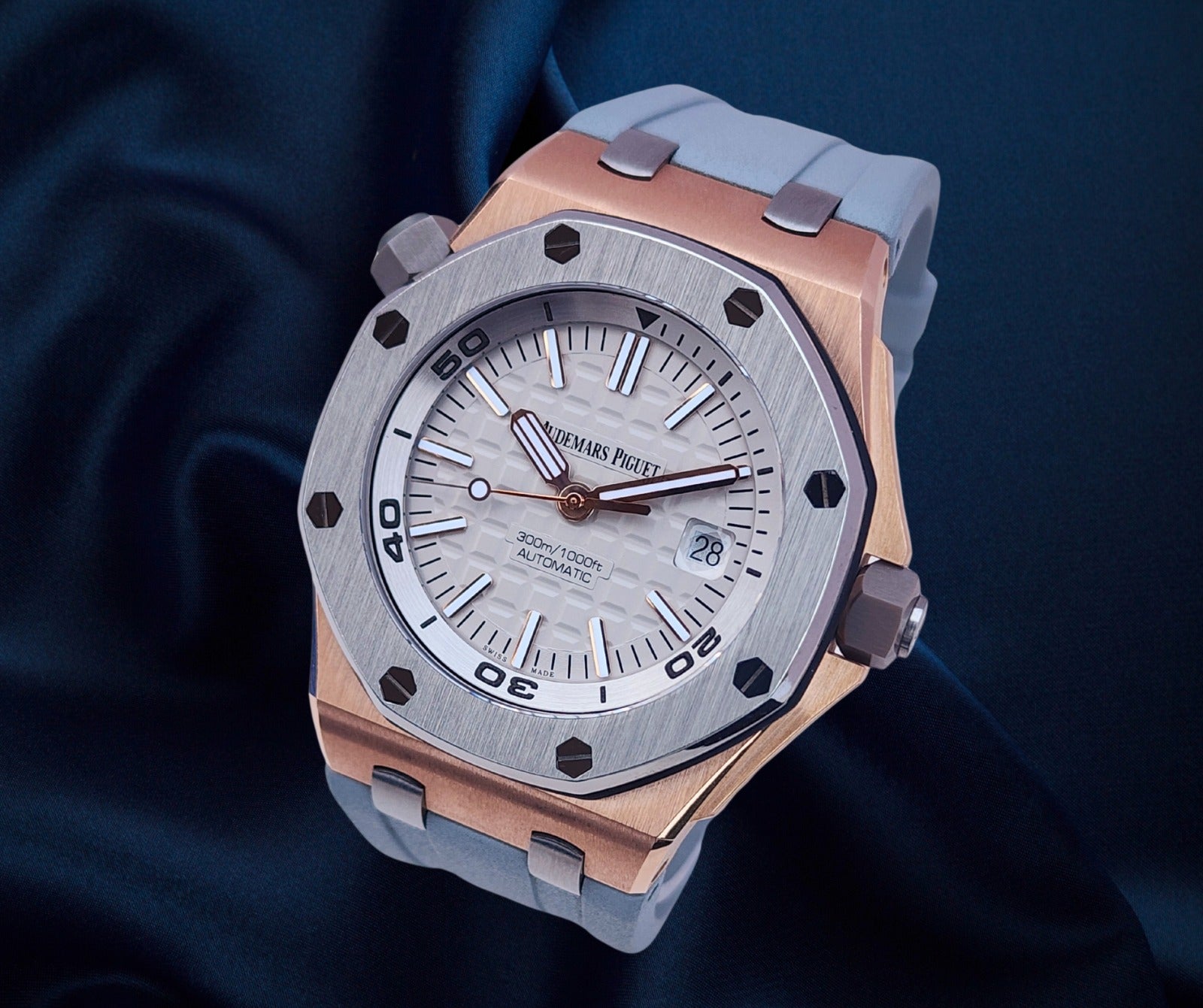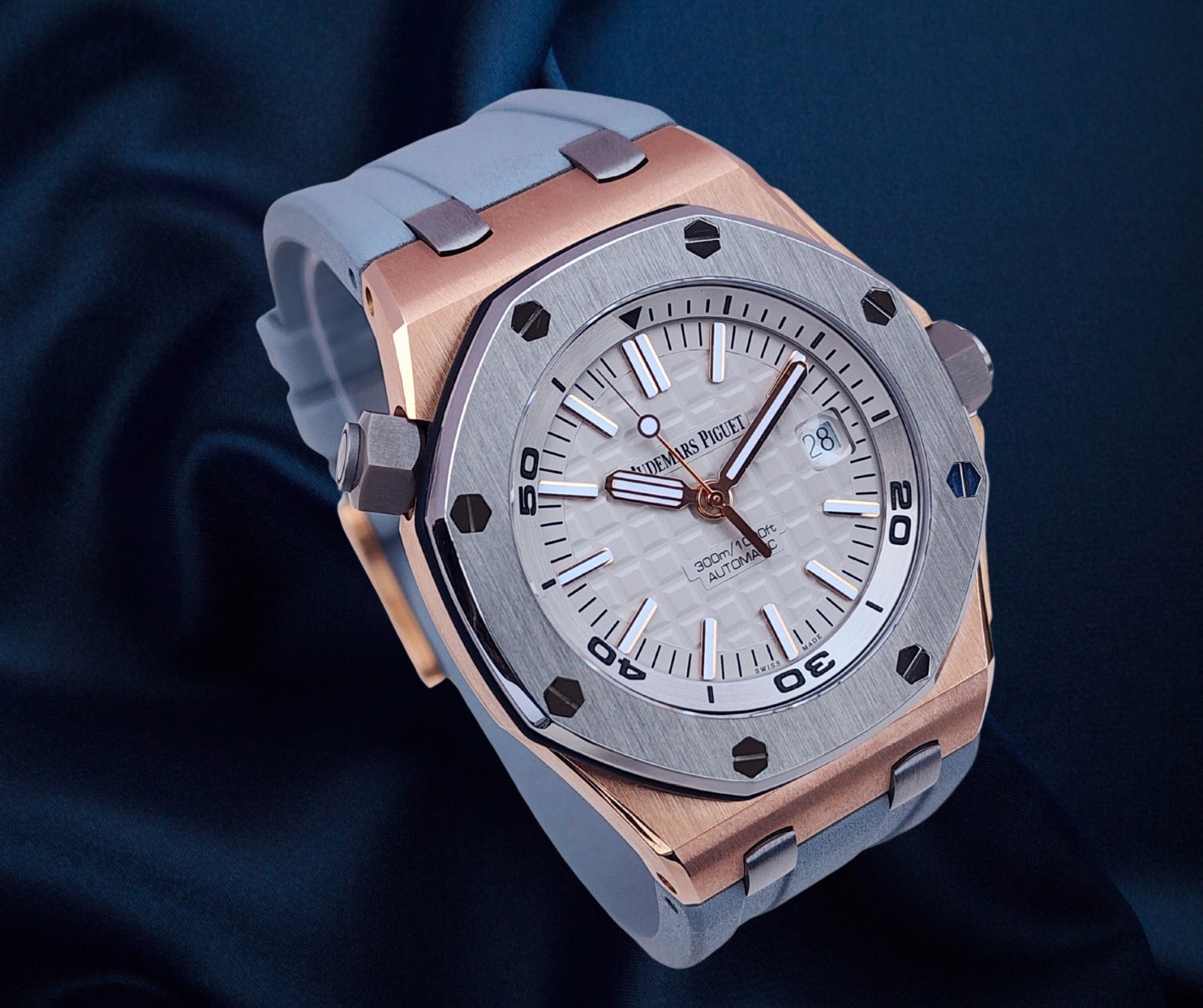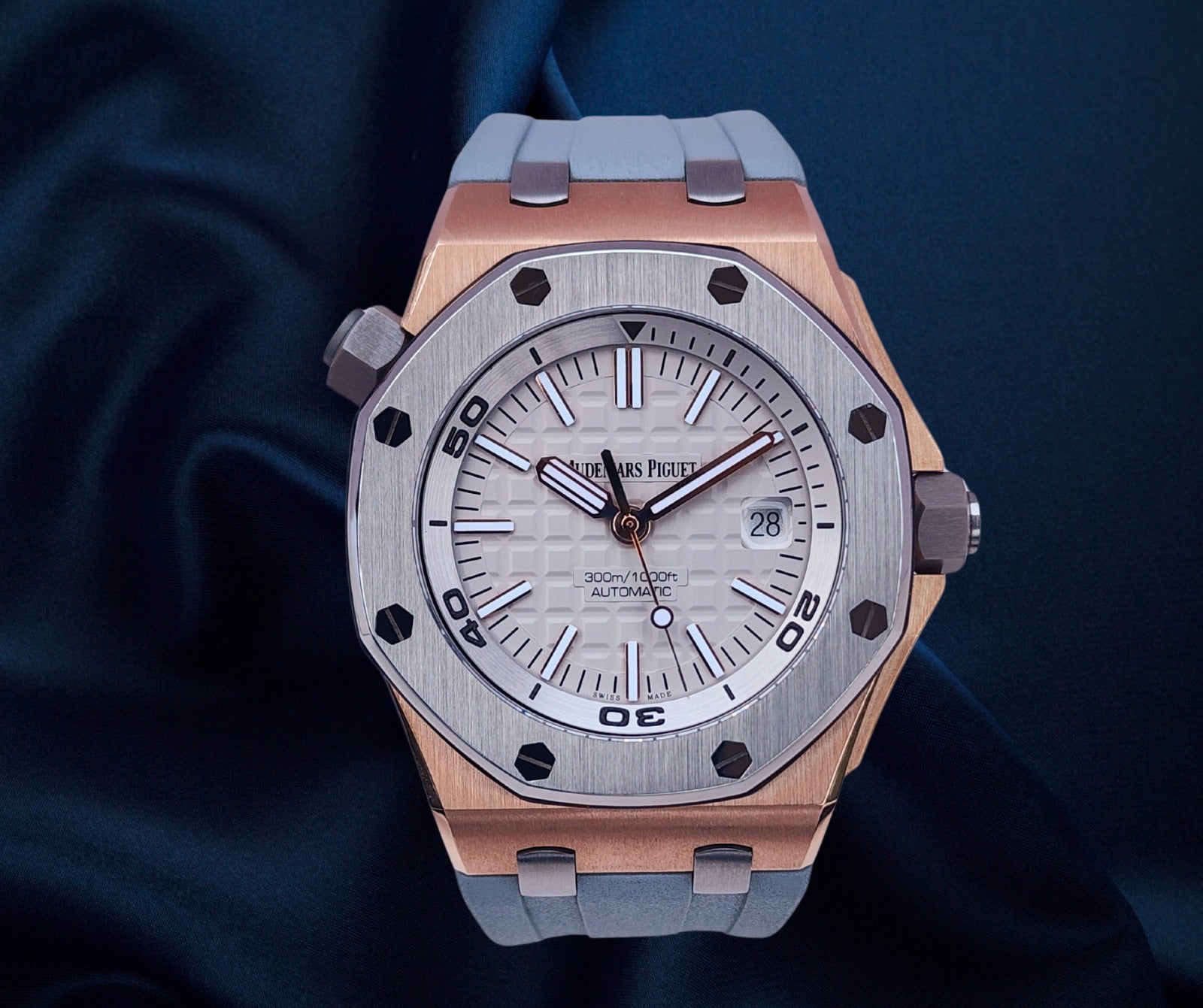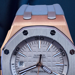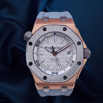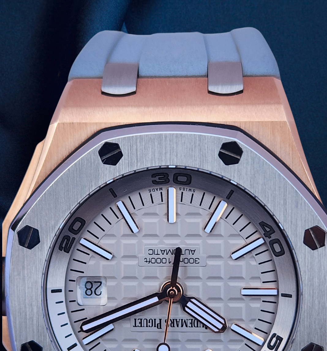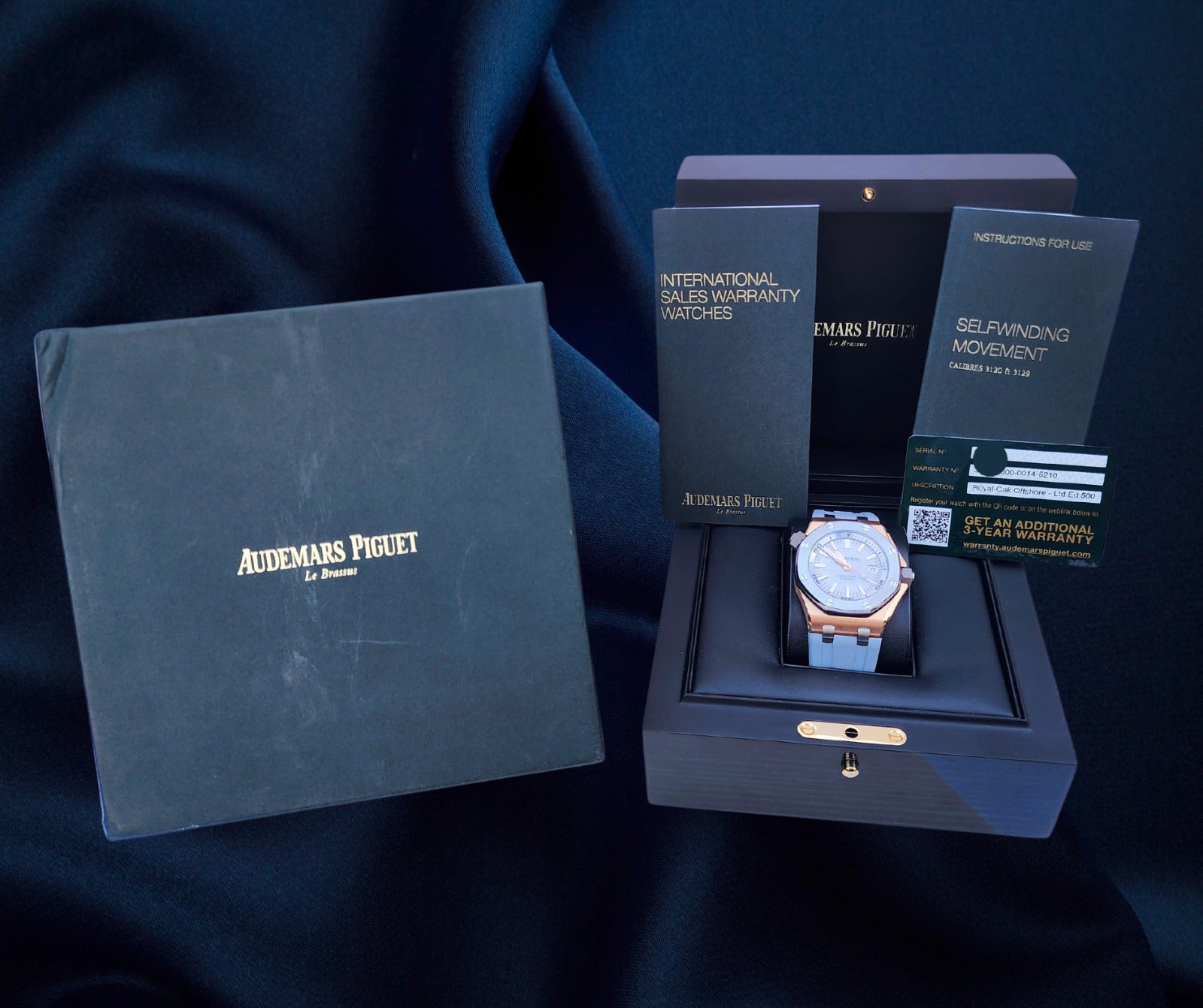 Up for sale is the Audemars Piguet Royal Oak Offshore Diver Japan Edition 1 of 500 15711OI.OO.A006CA.01 42mm with AP inner- and outer-box, Calibres 3120 & 3129 self winding movement book, international sales warranty book, and warranty card. Watch is dated 2019. It was recently placed on a timegrapher and is running well. Do excuse the dust/lint in the pictures as all of our watches are photographed under high intensity light with a macro lens. The serial numbers have been blurred for privacy. This timepiece is in excellent condition with no signs of wear and is located in Indiana.