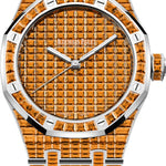 | CASE DETAIL | 18-carat white gold case set with baguette-cut orange spessartites, glareproofed sapphire crystal and caseback. |