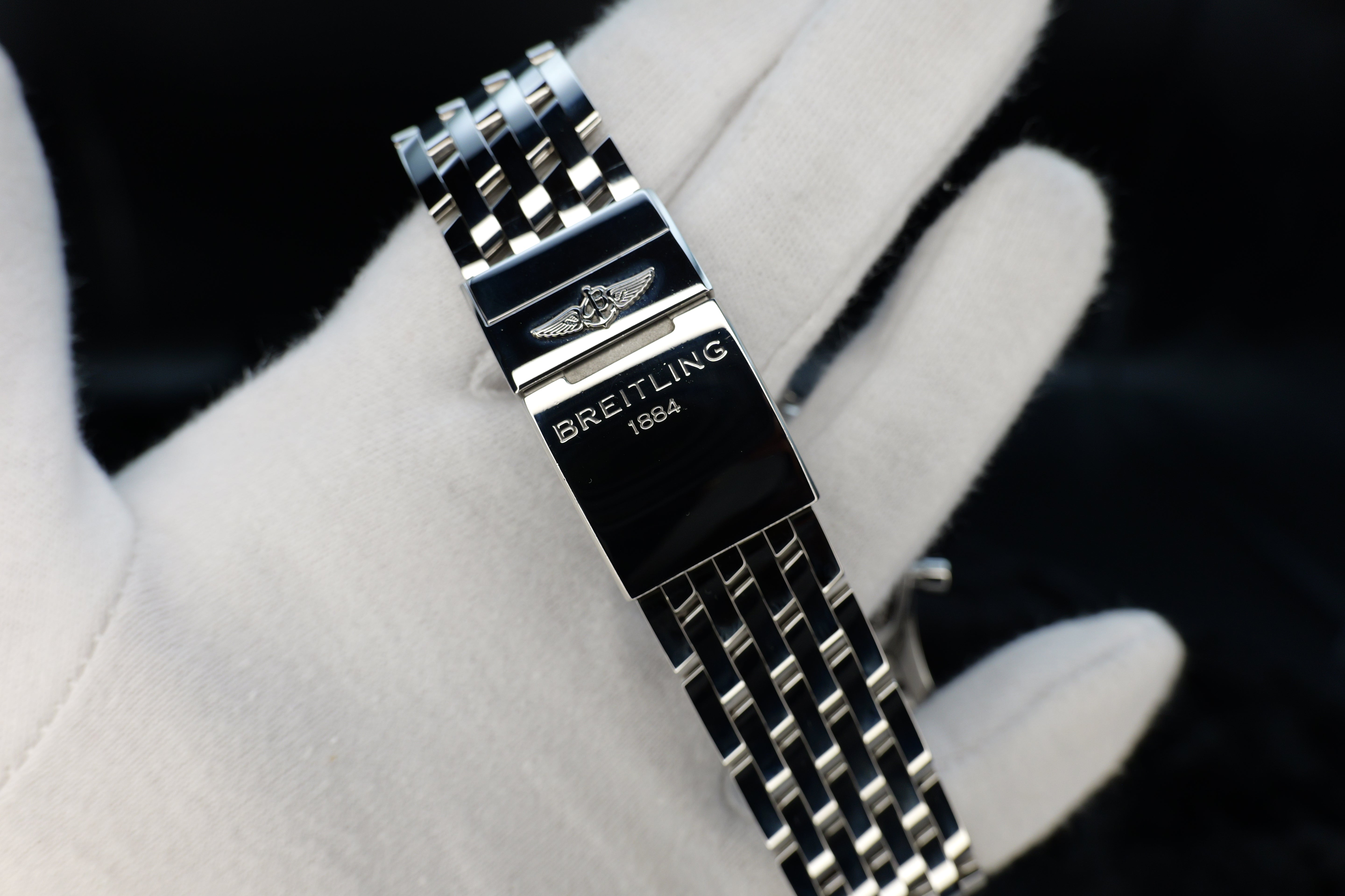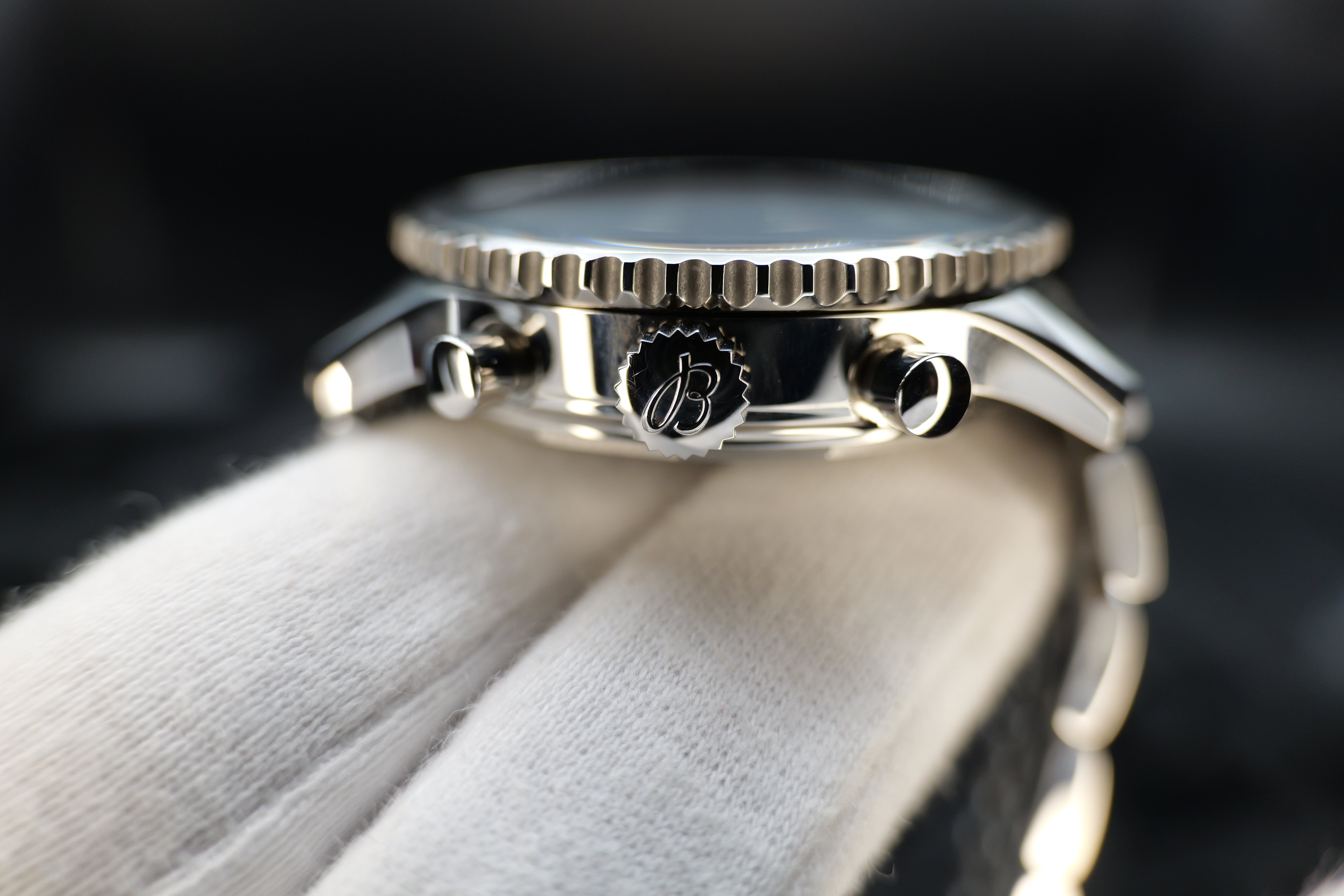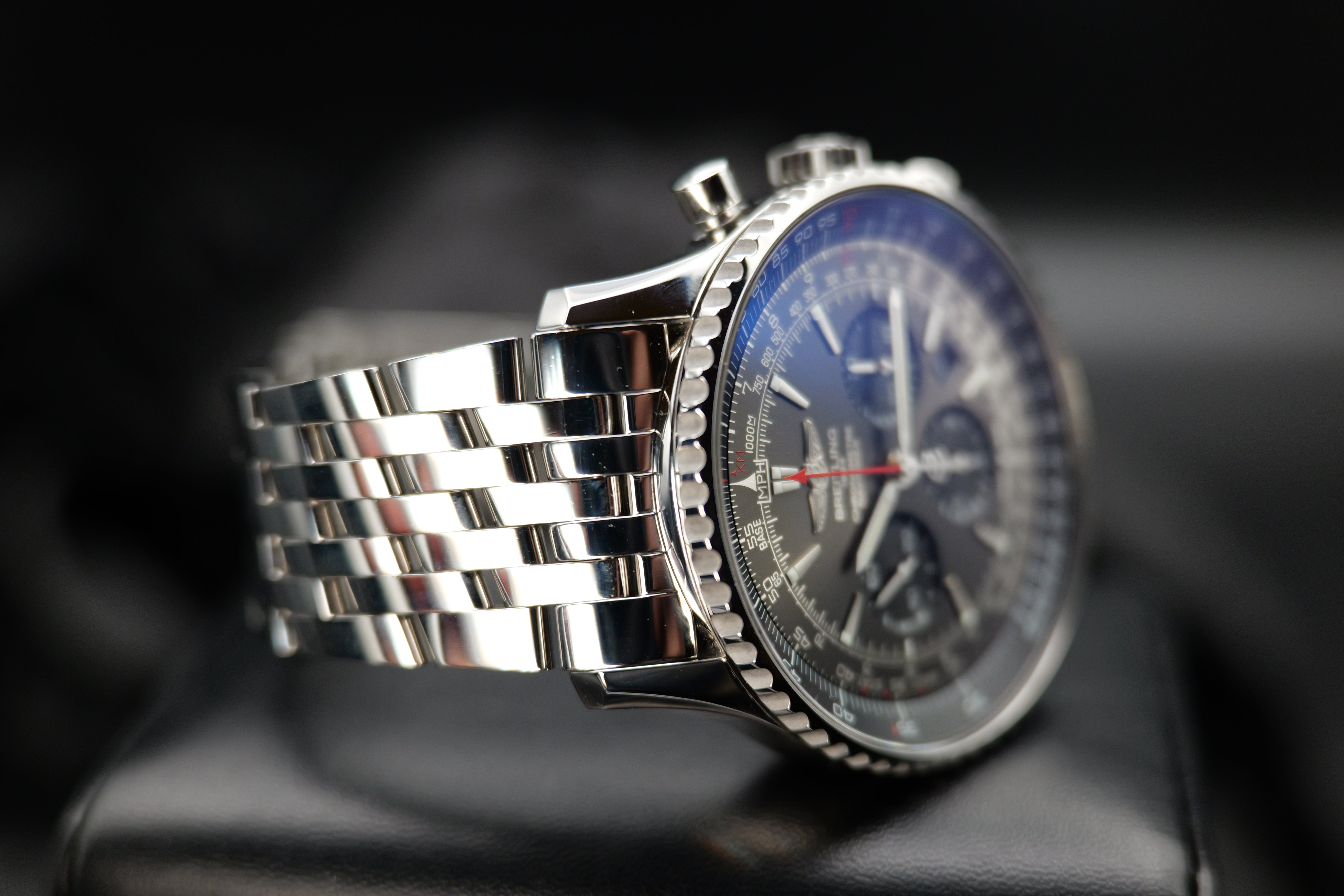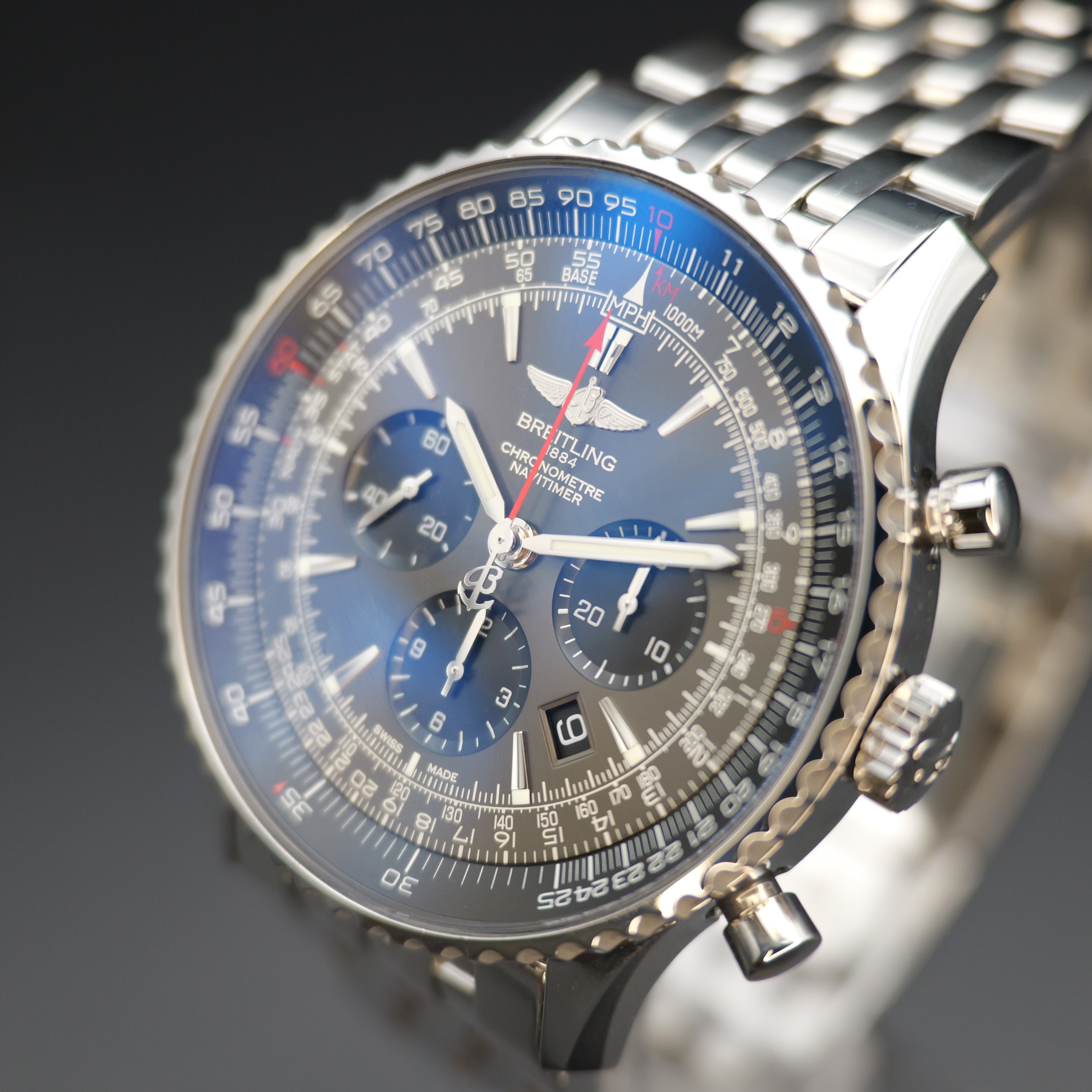 Up for sale is the Breitling Navitimer AB01271A/F570 46MM Stainless Steel Black Dial chronograph, Includes Breitling International Warranty card, Double Boxed, Breitling certificate, Maintenance booklet, Breitling Navitimer 101, Instruments for professionals, Instruction booklet, Chronometer Certificate. Watch is dated 2017. MSRP $10,000. It was recently placed on a timegrapher and is running well. All of our watches are photographed under high intensity light with a macro lens. Any flaws will be significantly magnified. The serial numbers have been blurred for privacy. Timepiece is like new, has little to no signs of wear, and is located in Indiana.