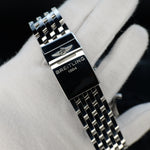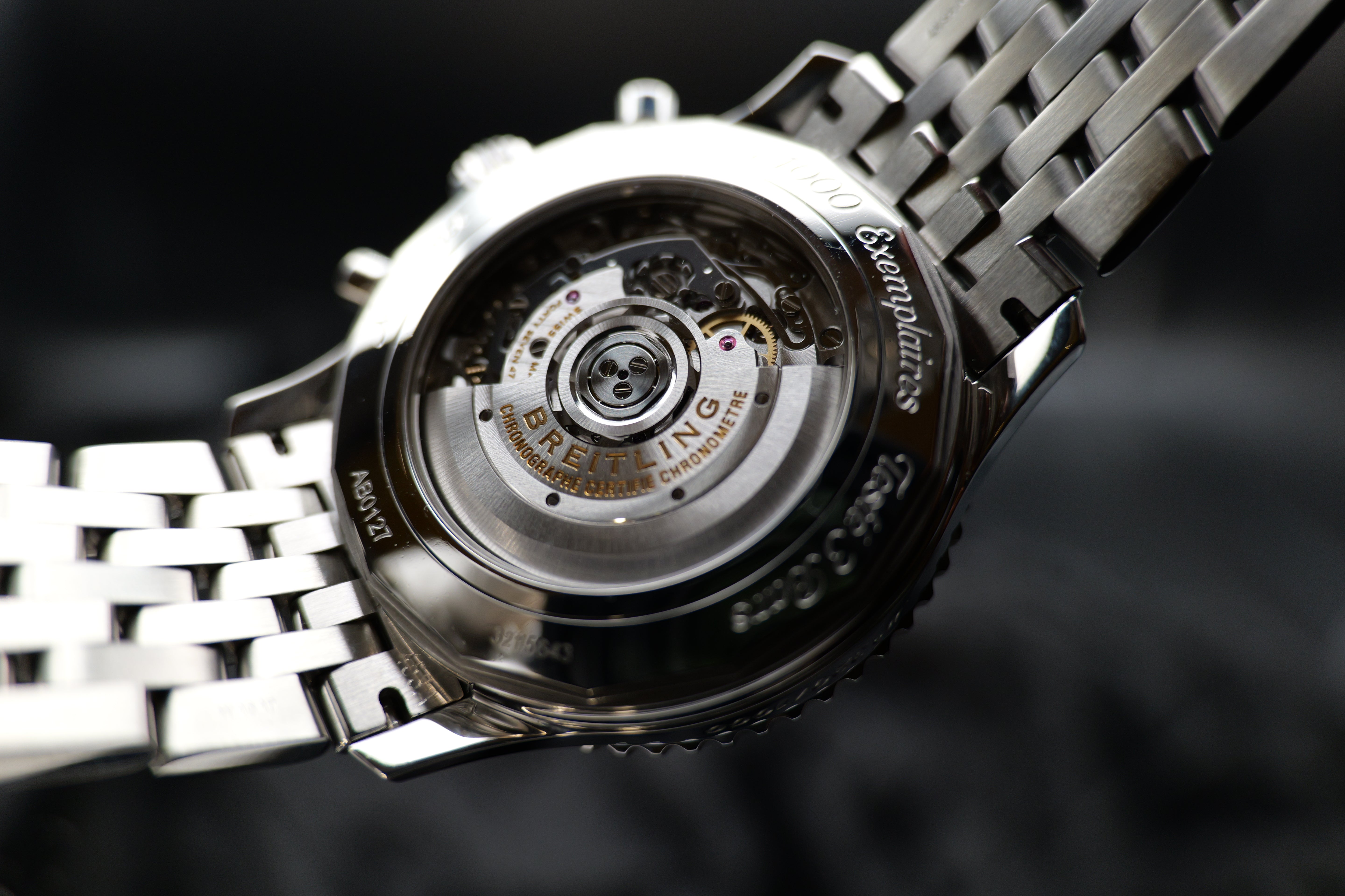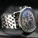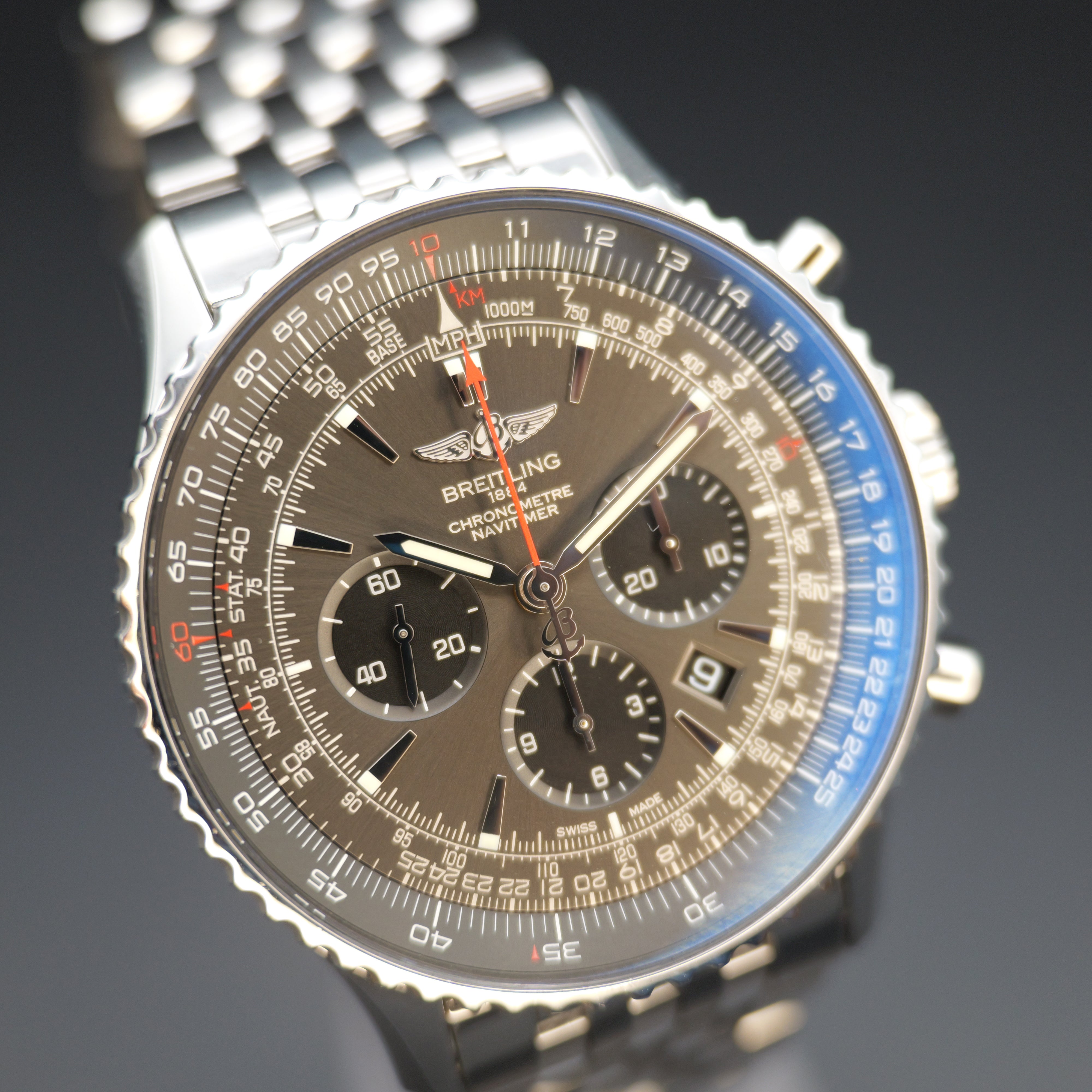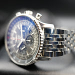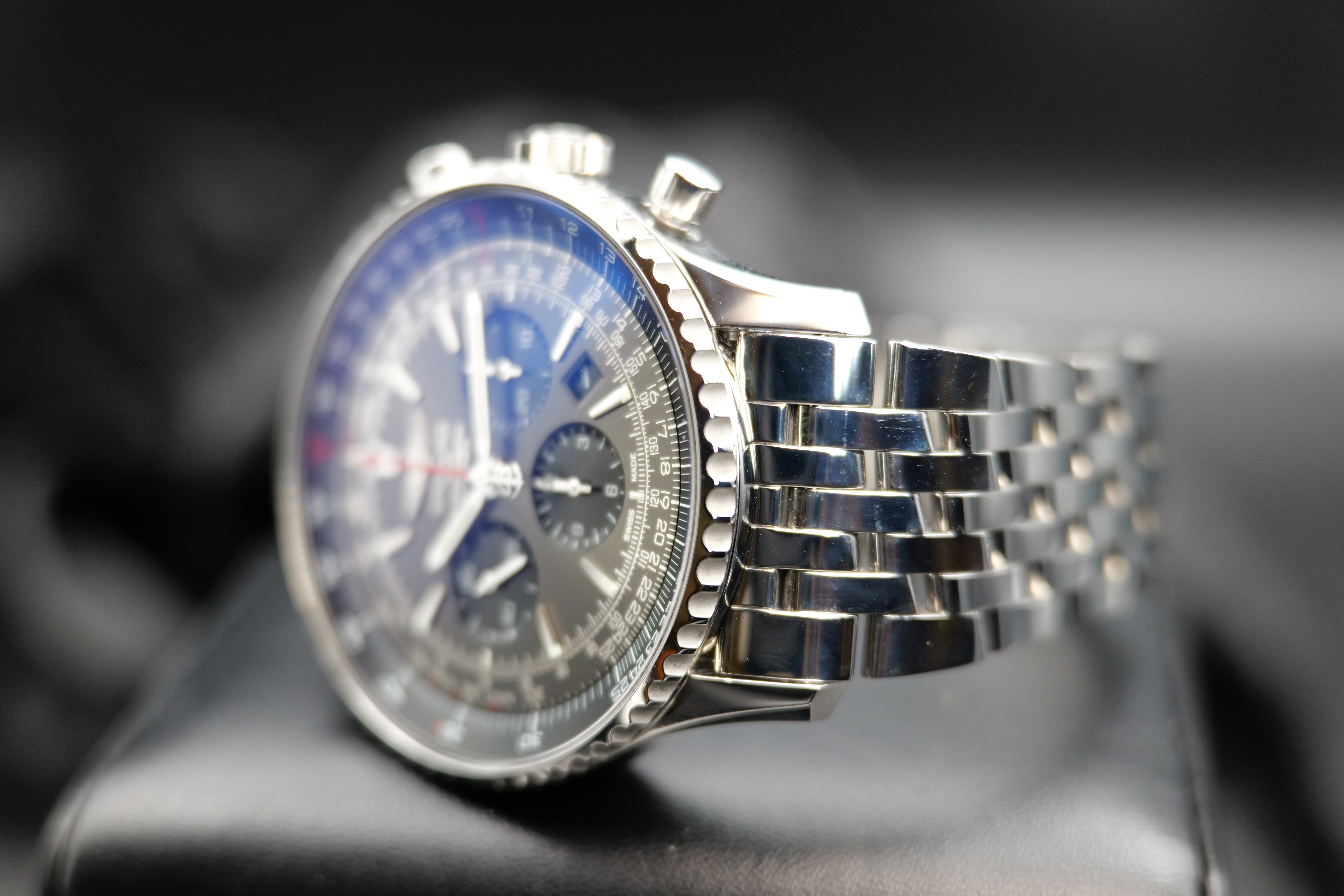 Up for sale is the Breitling Navitimer AB01271A/F570 46MM Stainless Steel Black Dial chronograph, Includes Breitling International Warranty card, Double Boxed, Breitling certificate, Maintenance booklet, Breitling Navitimer 101, Instruments for professionals, Instruction booklet, Chronometer Certificate. Watch is dated 2017. MSRP $10,000. It was recently placed on a timegrapher and is running well. All of our watches are photographed under high intensity light with a macro lens. Any flaws will be significantly magnified. The serial numbers have been blurred for privacy. Timepiece is like new, has little to no signs of wear, and is located in Indiana.
