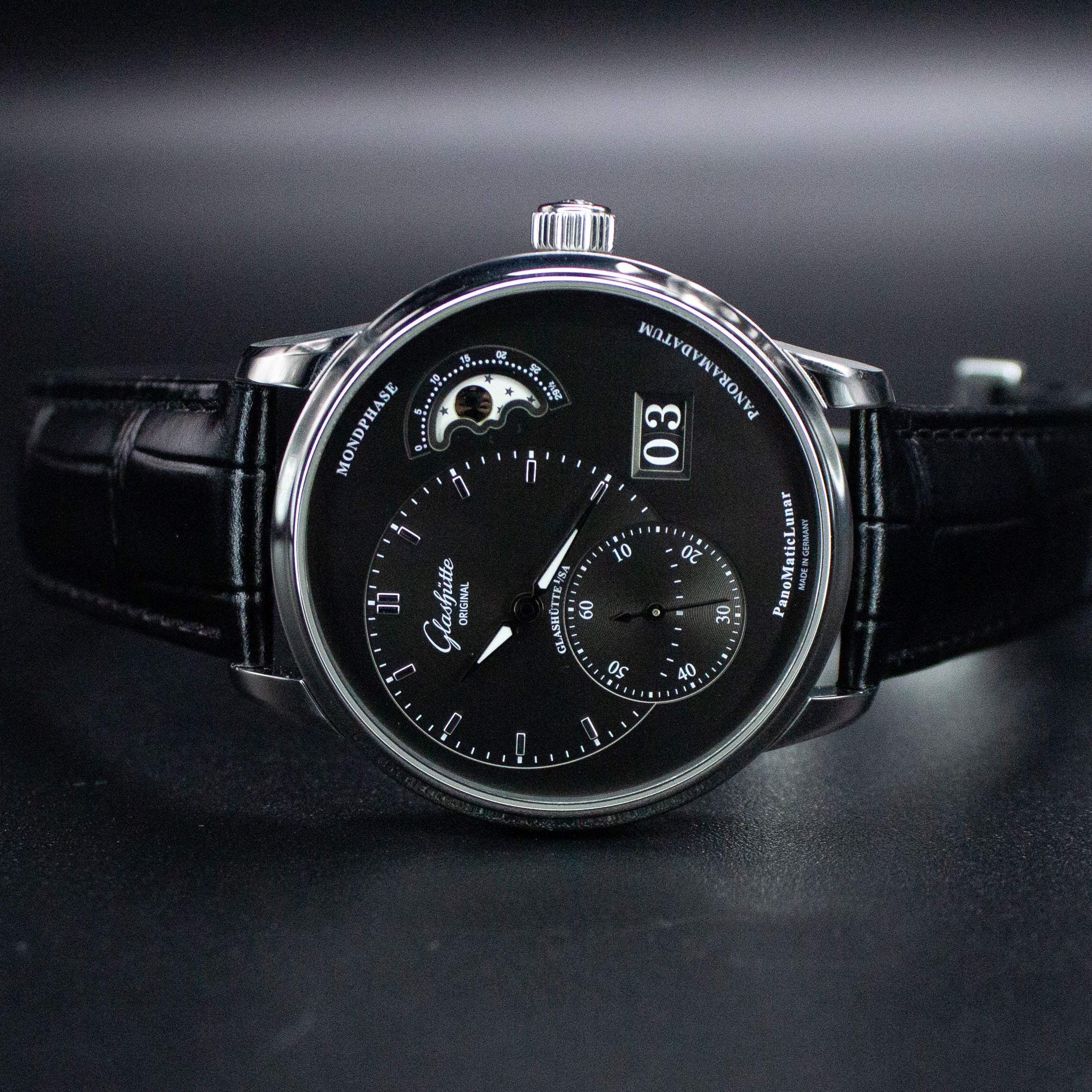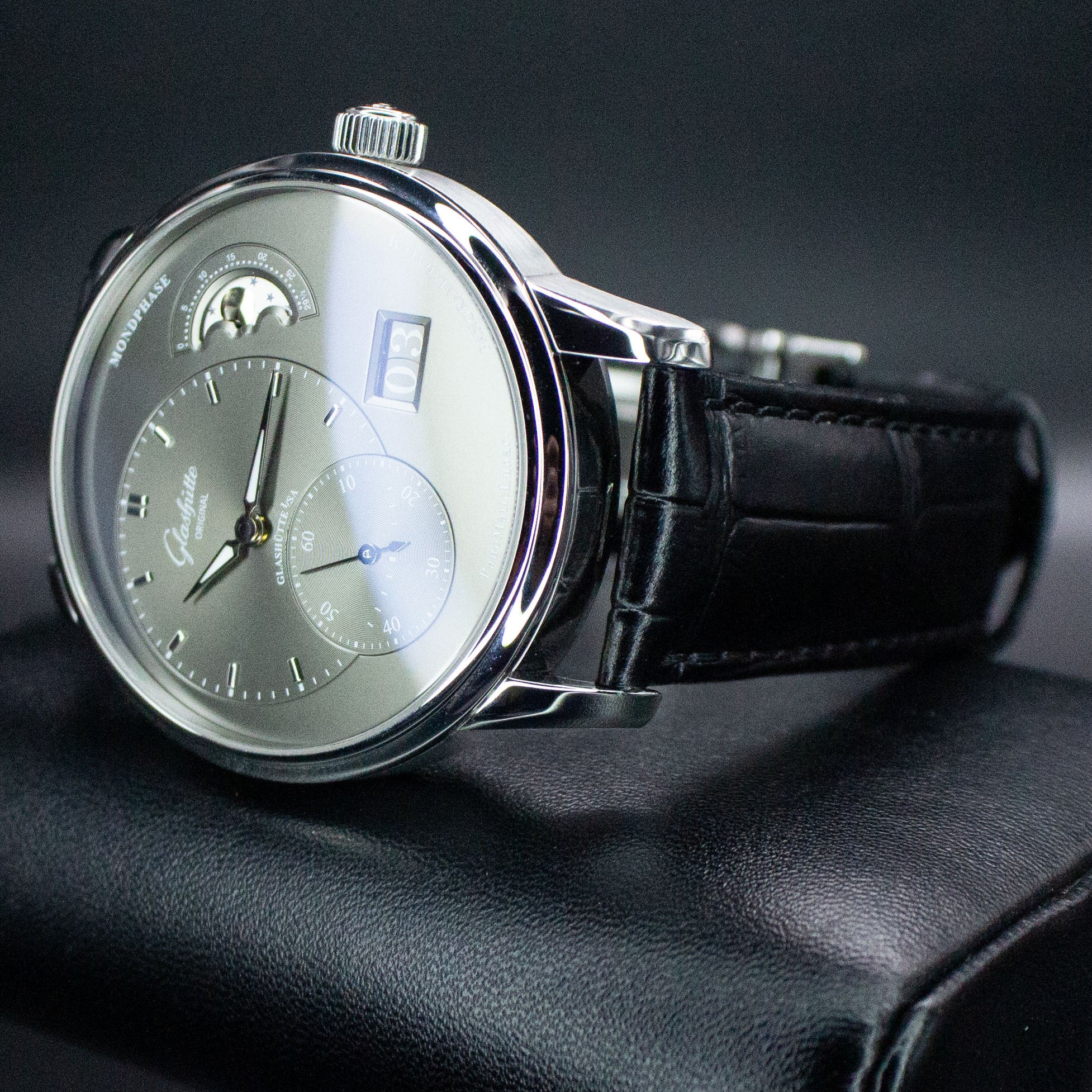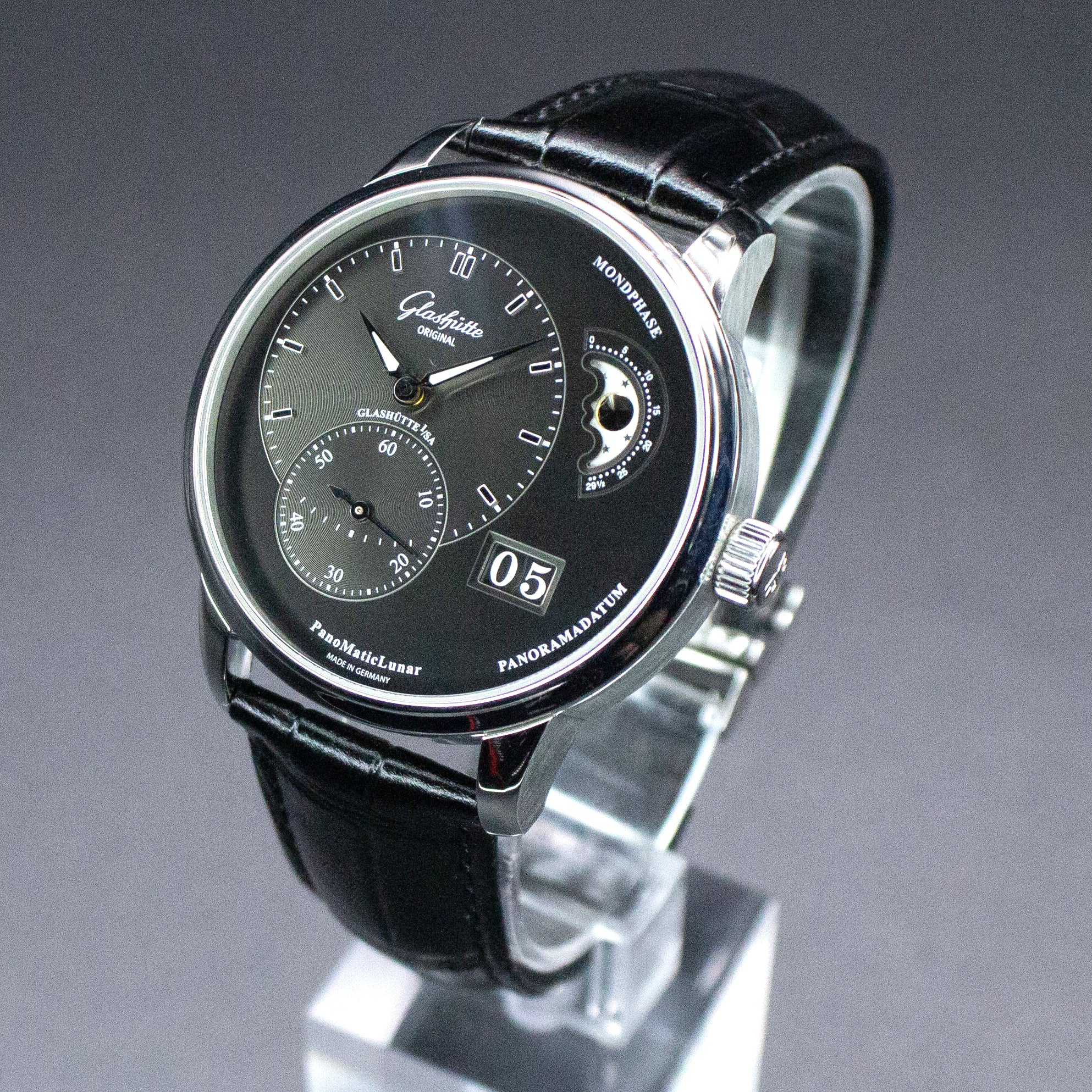 Glashutte Original PanoMaticLunar 1-90-02-43-32-05 40MM Steel Grey Dial Full Set WARRANTY