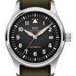 39.0 mm stainless steel case with soft-iron inner case for protection against magnetic fields, 10.8 mm thick, screw in crown, convex sapphire glass crystal with antireflective coating on both sides, black dial with luminescence, calibre 32110 automatic movement with date, hours, minutes, seconds, approximately 72 hours of power reserve, green textile strap. Water resistant to 6 bar.