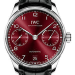 42.3mm stainless steel case, 14.1mm thick, see-through sapphire glass back, convex sapphire glass crystal with antireflective coating on both sides, burgundy dial, calibre 52010 automatic movement with date, hours, minutes, small seconds, power reserve indicator, approximately 168 hours of power reserve, black alligator leather strap. Water resistant to 3 bar.