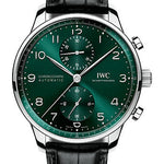 IWC Portugieser Chronograph - Stainless Steel Case - Green Dial - Black Alligator Leather Strap - IW371615