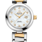 34 mm steel case, transparent back, self-locking crown, steel bezel, sapphire crystal with anti-reflective treatment on both sides, white dial set with 11 diamonds indexes, caliber 8520 self-winding movement with date window at 3 o'clock, approximately 50 hours of power reserve, steel and yellow gold bracelet. Water resistant to 100 m (330 ft).