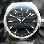 Up for sale is the Omega Seamaster Aqua Terra 220.10.41.21.01.001 41MM Black with Master chronometer card, pictograms card, operating instructions, 2 extra links, hang tag, and is triple boxed. Watch is dated 2021. MSRP $7100. It was recently placed on a timegrapher and is running well. All of our watches are photographed under high intensity light with a macro lens. Any flaws will be significantly magnified. The serial numbers have been blurred for privacy. timepiece is in excellent condition, showing little to no signs of wear. Timepiece is located in Indiana.