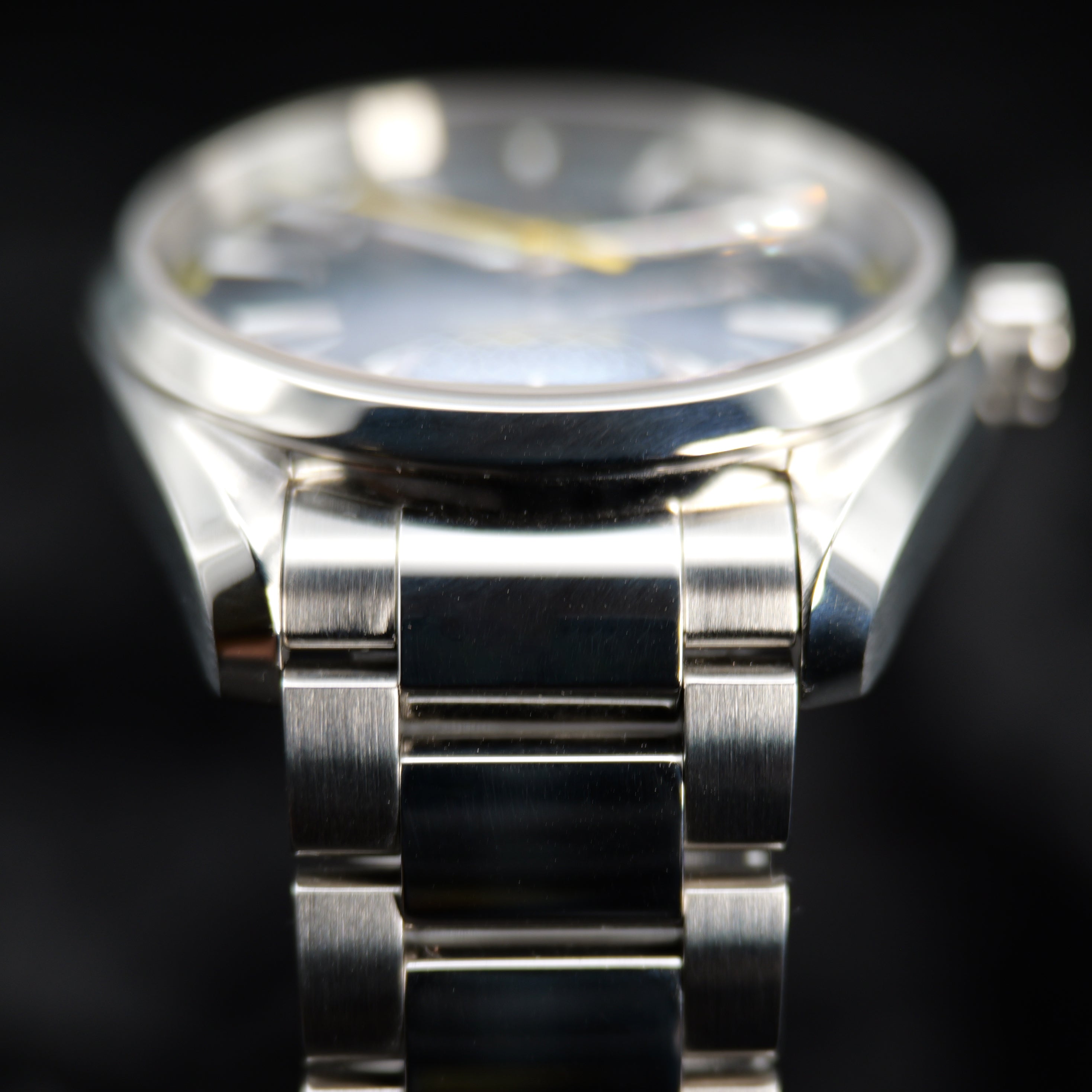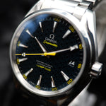 Up for sale is the Omega Seamaster Aqua Terra James Bond Spectre 41.5mm 231.10.42.21.03.004 with original box, international warranty card, pictograms card, James Bond Limited Edition certificate of authenticity book, operating instructions book, eyeglass, nylon strap and strap tool. Timepiece is dated 2016. MSRP $10,000. It was recently placed on a timegrapher and is running well. Do excuse the dust/lint in the pictures as all of our watches are photographed outdoors in natural lighting/conditions. The serial numbers have been blurred for privacy. This timepiece is in excellent condition with no signs of wear. Timepiece is located in Indiana.