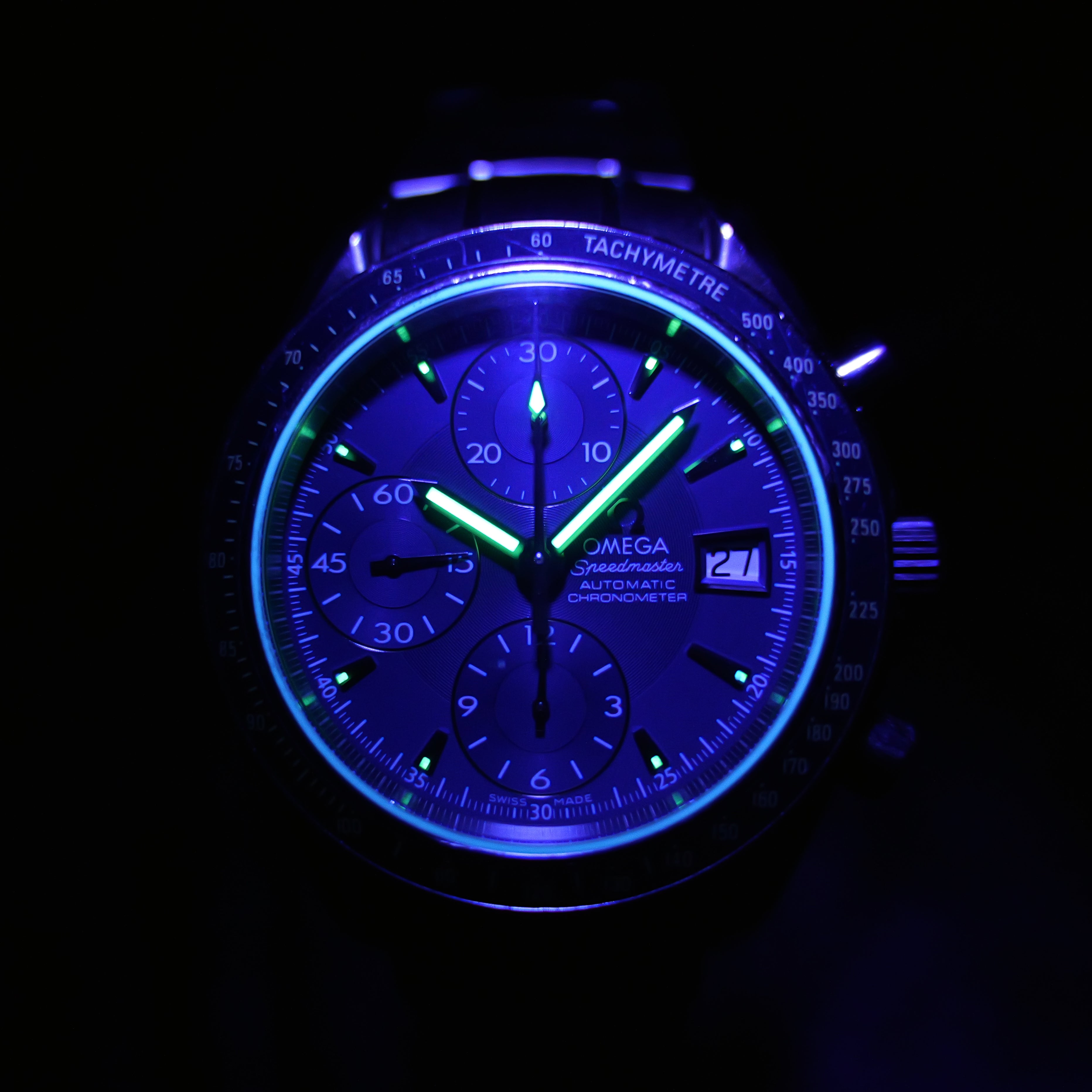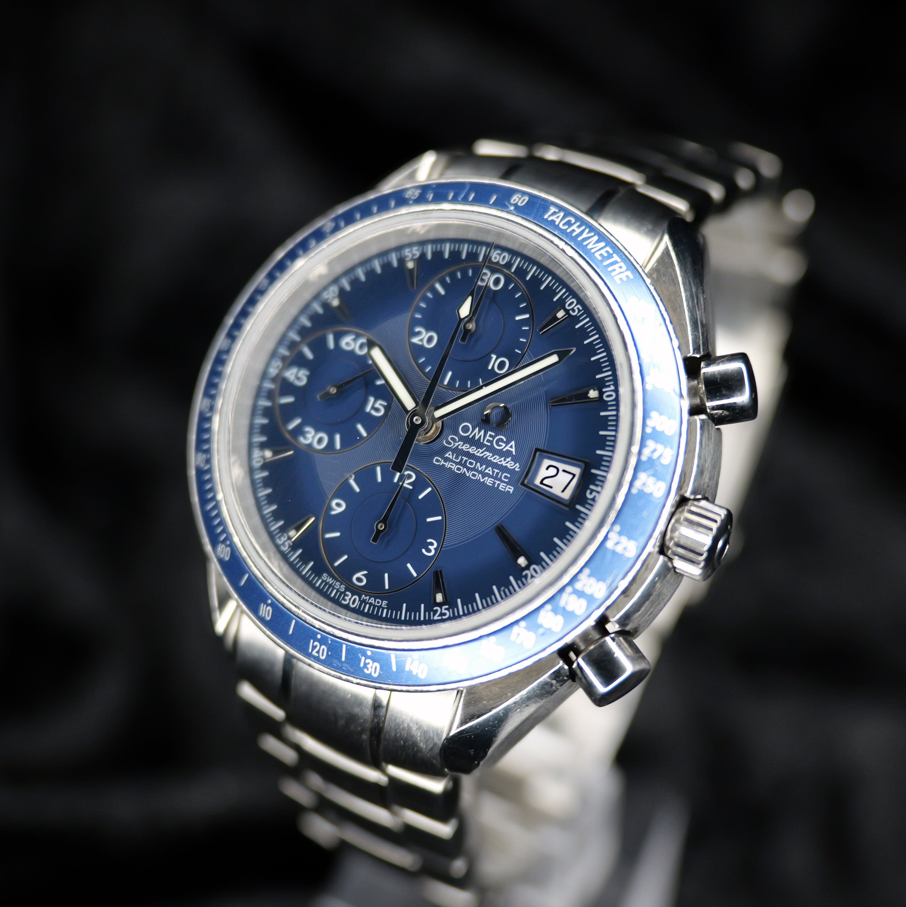 Up for sale is the Omega Speedmaster Date 3212.80.00 40MM Stainless Steel Blue Dial with. Watch is dated 2011. It was recently placed on a timegrapher and is running well. All of our watches are photographed under high intensity light with a macro lens. Any flaws will be significantly magnified. The serial numbers have been blurred for privacy. Timepiece is in good condition showcasing minor wear on the bezel. Timepiece is located in Indiana.