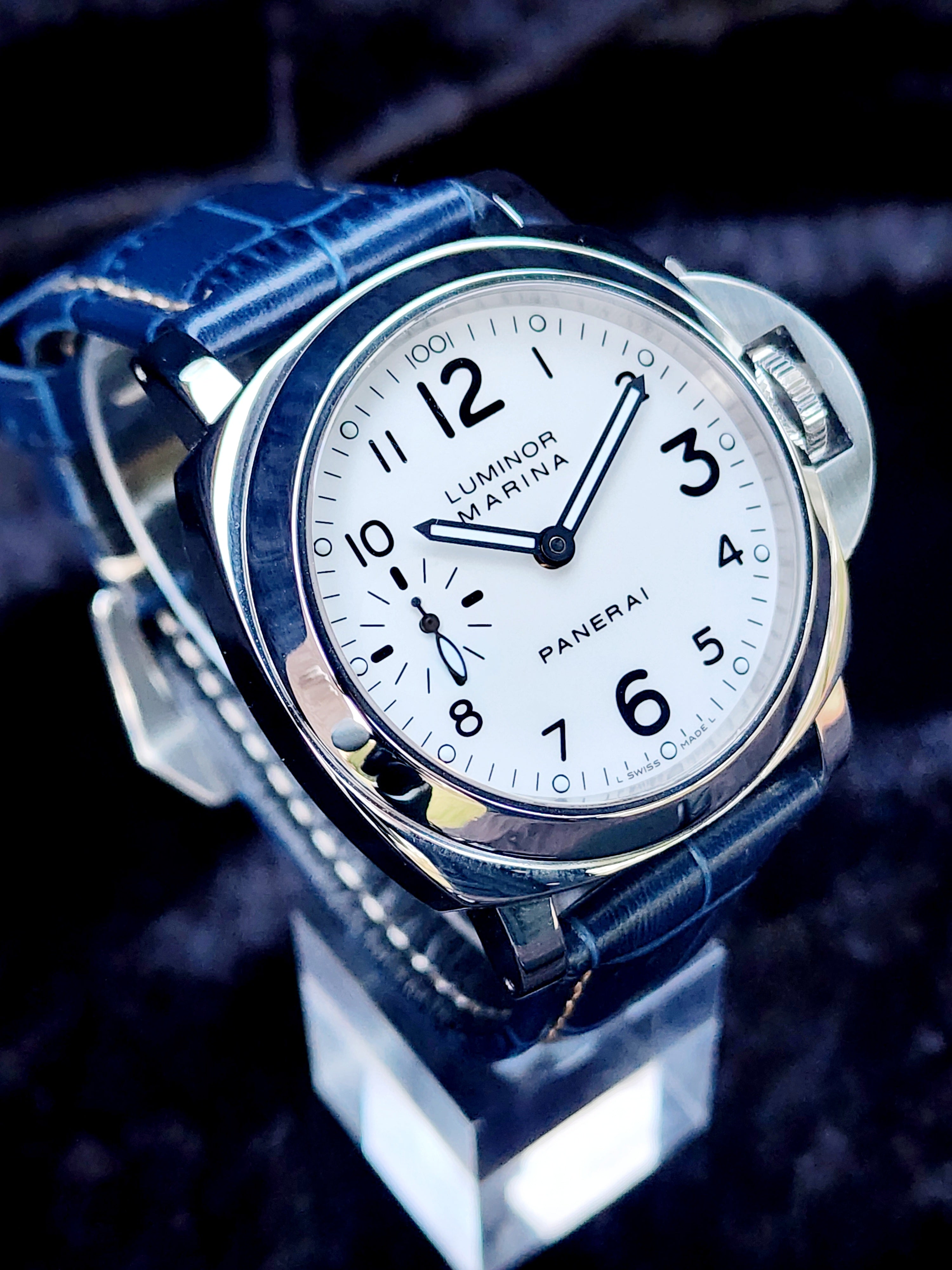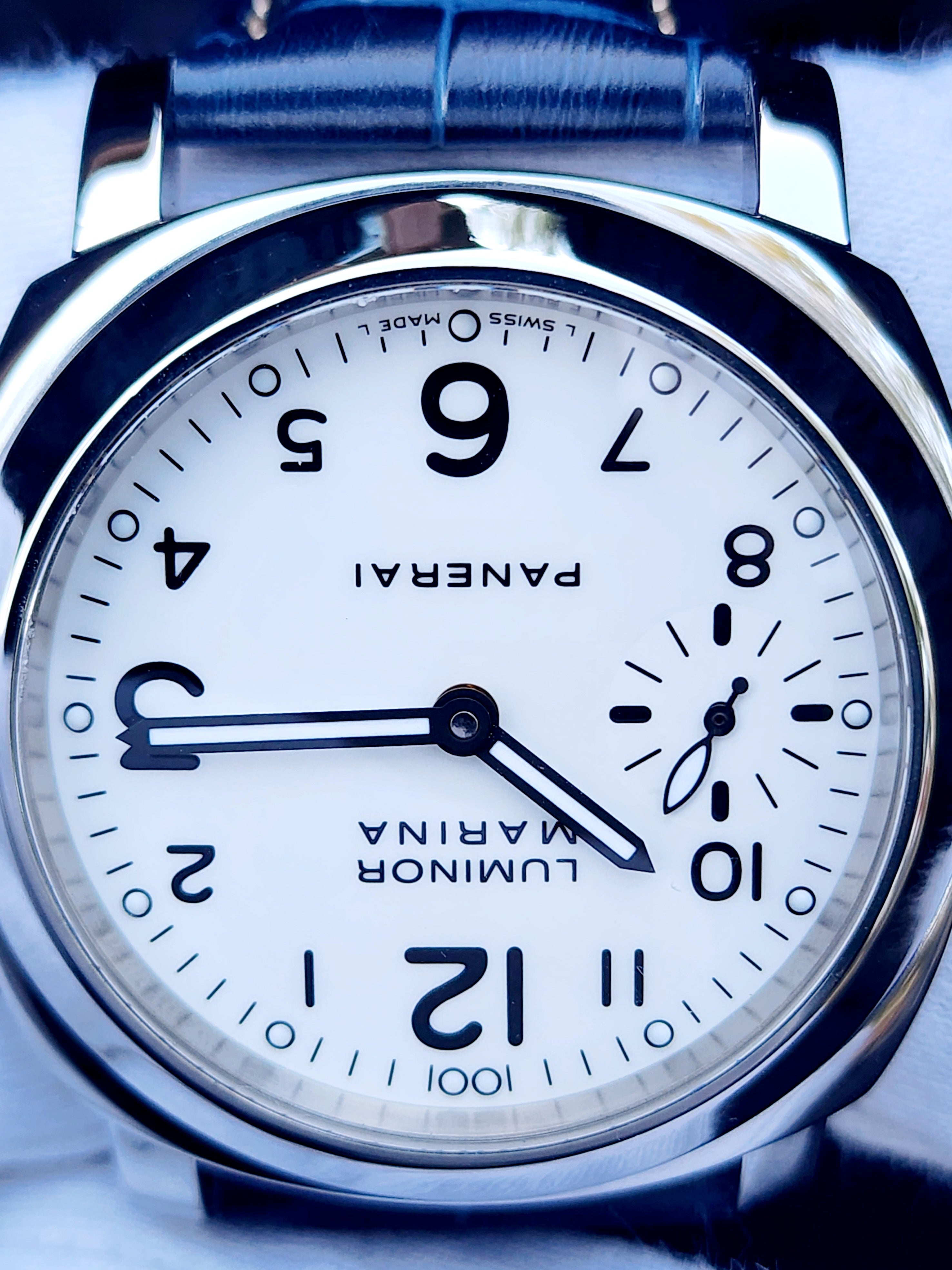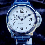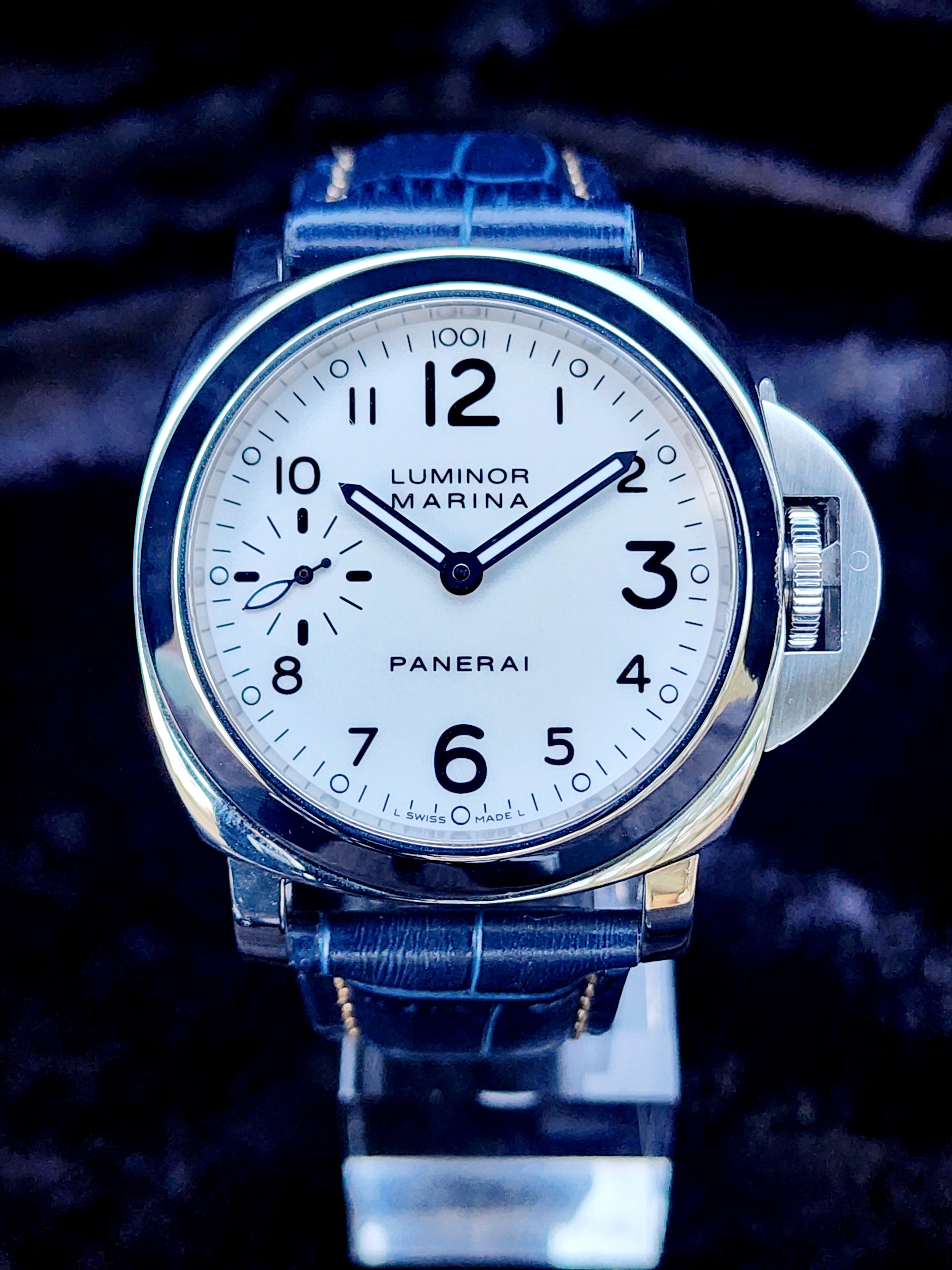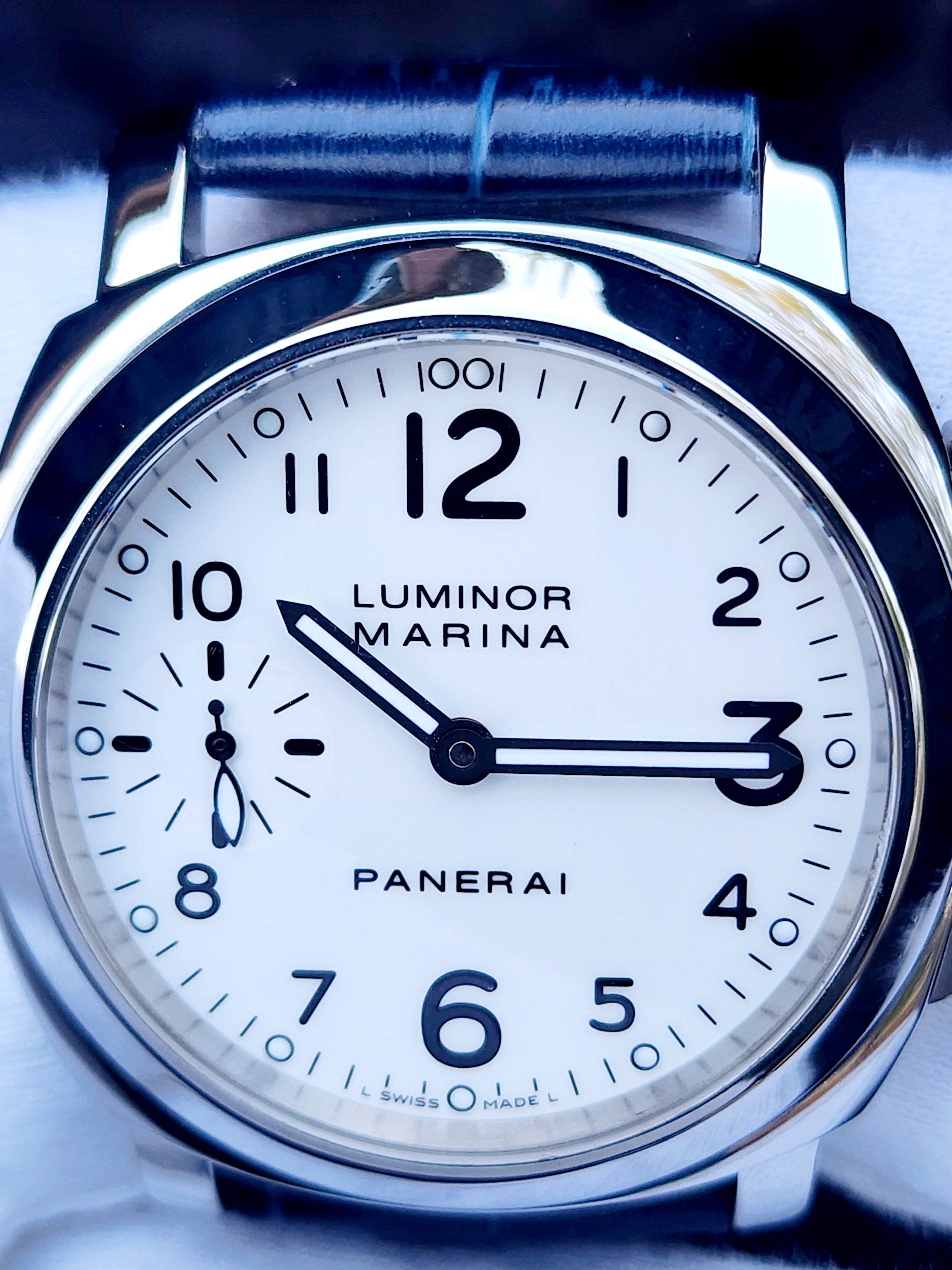 Up for sale is the Panerai Luminor Marina PAM00113 PAM113 44mm White Dial with warranty card, COSC certificate, International guarantee book and Instruction book. Watch is dated 2005. MSRP $6300. It was recently placed on a timegrapher and is running well. All of our watches are photographed under high intensity light with a macro lens. Any flaws will be significantly magnified. The serial numbers have been blurred for privacy. Timepiece is in excellent condition with little to no signs of wear and is located in Indiana.