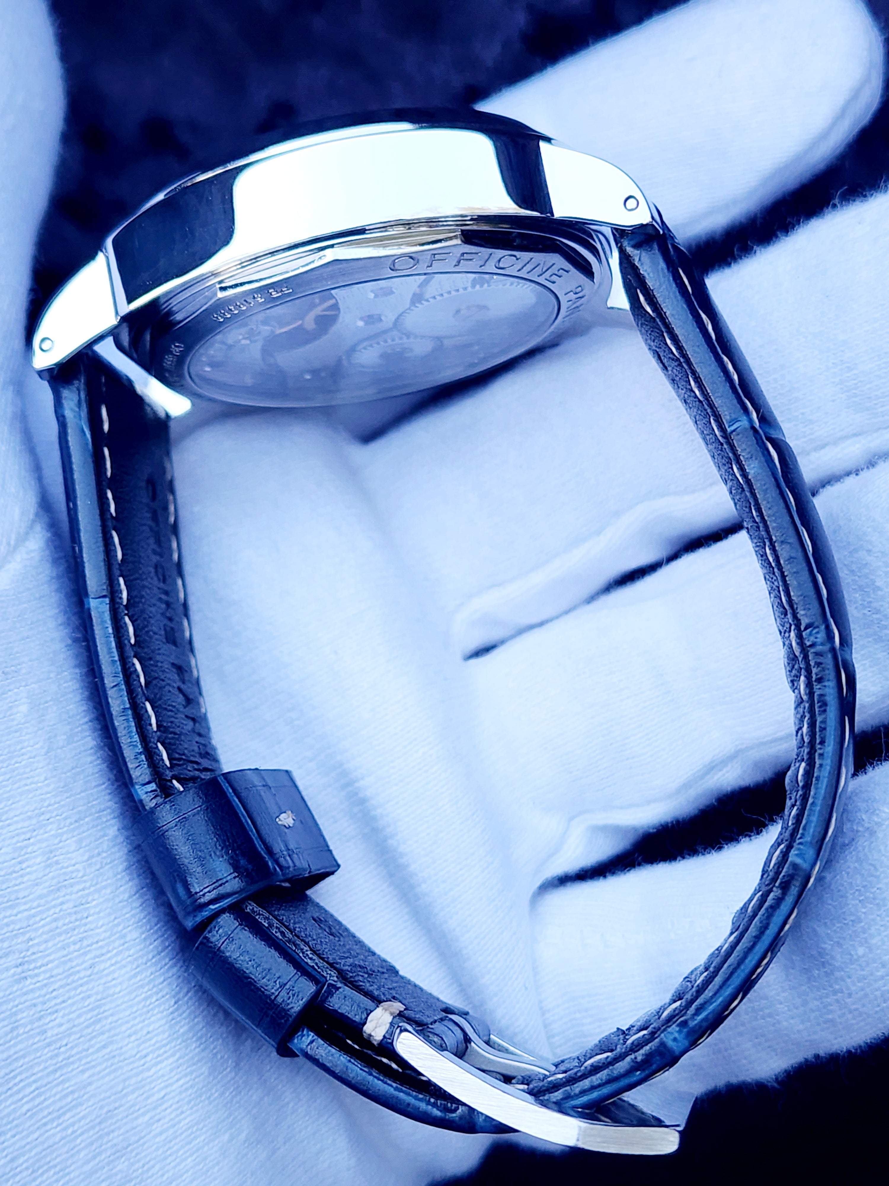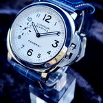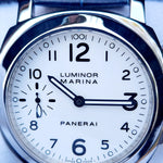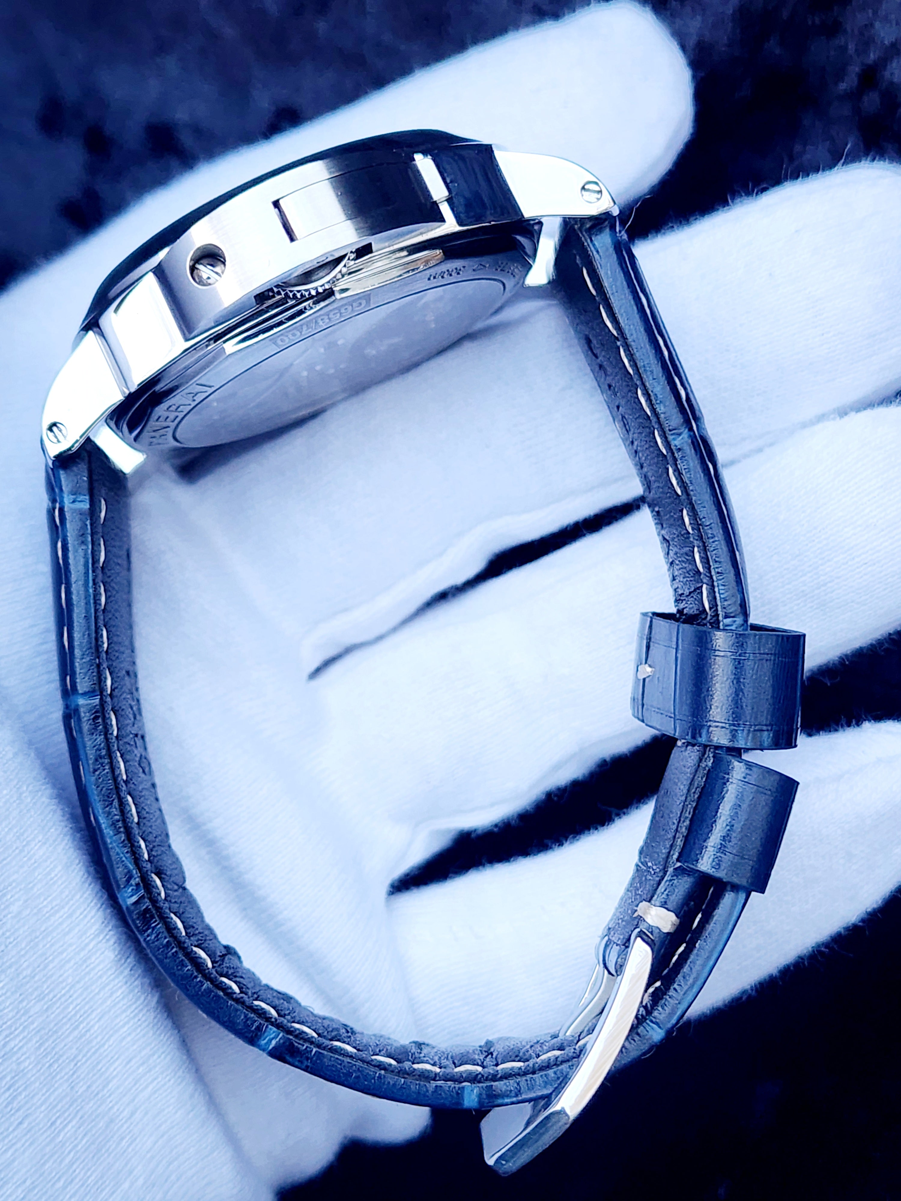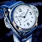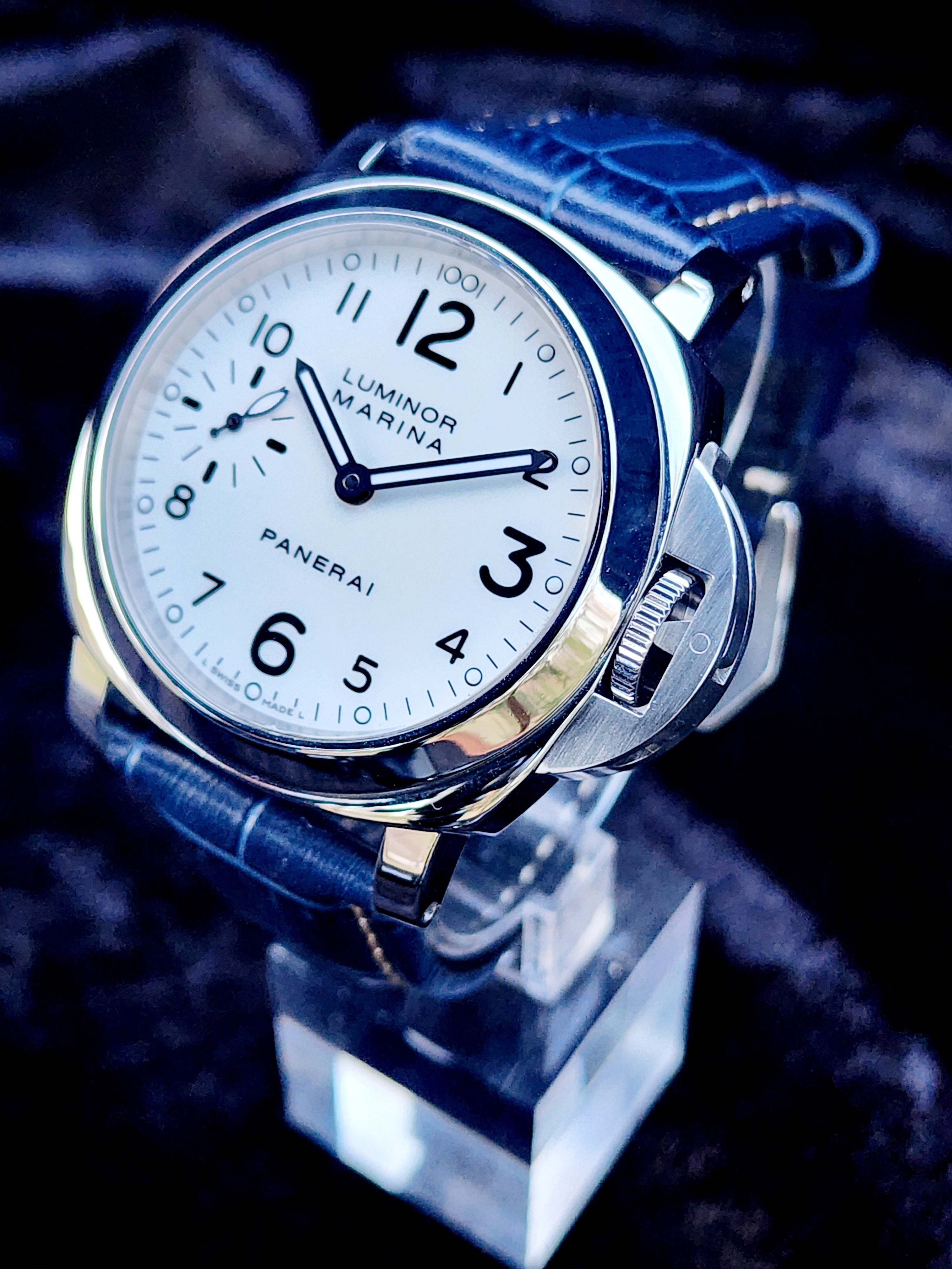 Up for sale is the Panerai Luminor Marina PAM00113 PAM113 44mm White Dial with warranty card, COSC certificate, International guarantee book and Instruction book. Watch is dated 2005. MSRP $6300. It was recently placed on a timegrapher and is running well. All of our watches are photographed under high intensity light with a macro lens. Any flaws will be significantly magnified. The serial numbers have been blurred for privacy. Timepiece is in excellent condition with little to no signs of wear and is located in Indiana.