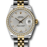 Rolex Steel and Yellow Gold Datejust 31 Watch - 46 Diamond Bezel - Silver Diamond Dial - Jubilee Bracelet - 178383 sdj