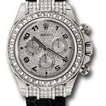 Rolex White Gold Cosmograph Daytona 40 Watch - Pave Diamond Enamel Arabic Dial - Black Leather Strap - 116599TBR