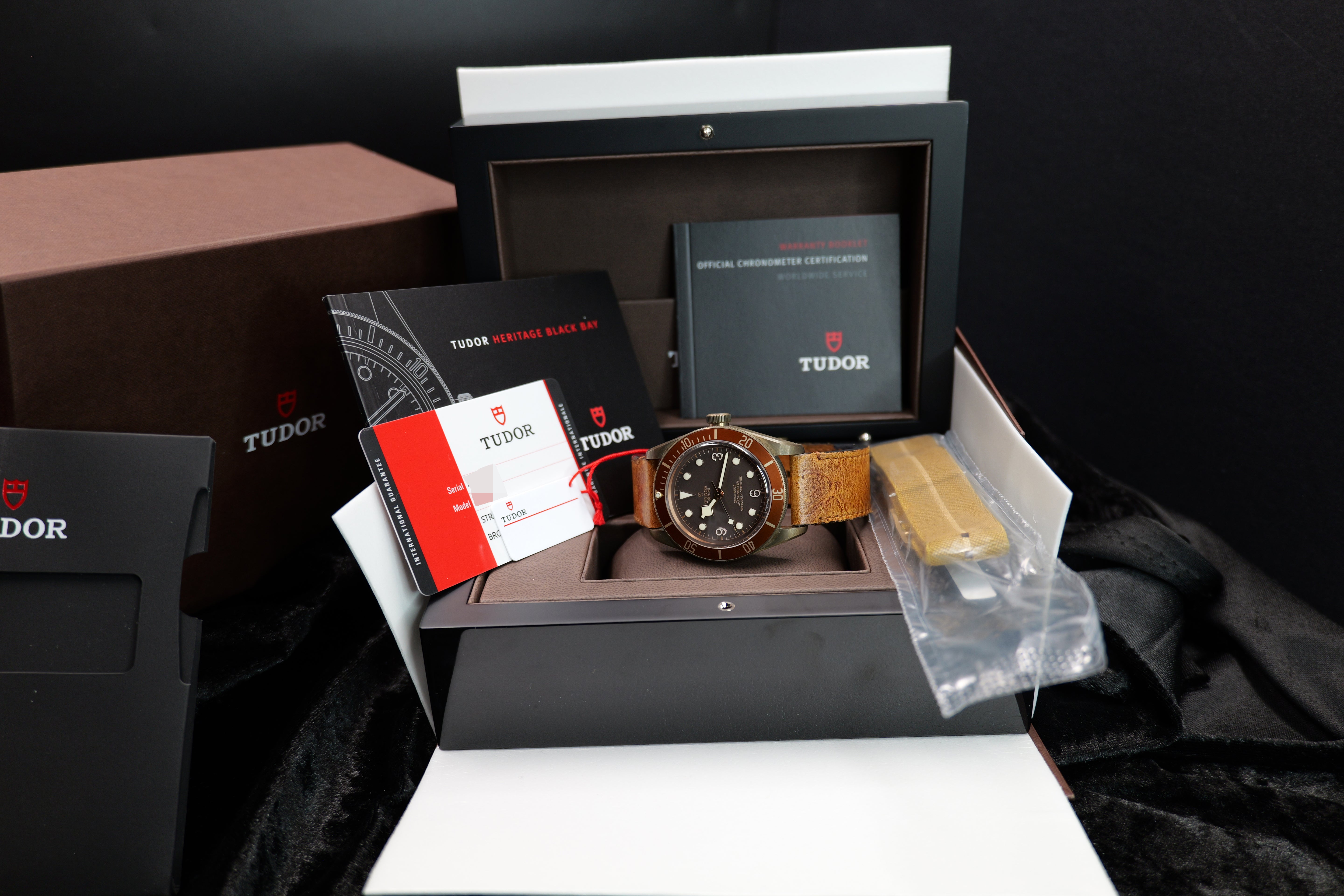 Up for sale is the Tudor Black Bay Bronze 79250BM-0005 43MM Bronze Brown Dial with Warranty card, warranty booklet, tudor booklet, extra strap, hang tag, and is double boxed with sleeve. Watch is dated 2017. MSRP $4,400. It was recently placed on a timegrapher and is running well. All of our watches are photographed under high intensity light with a macro lens. Any flaws will be significantly magnified. The serial numbers have been blurred for privacy. Timepiece is in excellent condition showing little to no signs of wear. Timepiece is located in Indiana.