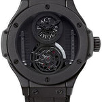 44mm black ceramic case, black ceramic bezel, black dial with two replicas of the column in Place Vendome, manual winding Vendome tourbillon HUB 6003 movement, approximately 5 days of power reserve, black rubber and gummy alligator strap with deployant buckle. Water resistant to 100 meters.