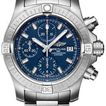 43.00 mm stainless steel case, 16.43 mm thick, cambered sapphire crystal with glareproof treatment on both sides, blue dial, Breitling 13 self-winding movement, approximately approx. 48 hrs of power reserve, metal bracelet. Water resistant to 300 m (1,000 ft).
