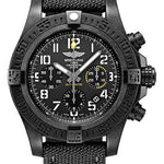45.00 mm Breitlight case, 16.20 mm thick, screw-locked crown with two gaskets, unidirectional ratcheted bezel, cambered sapphire crystal with glareproof treatment on both sides, volcano black dial, Breitling 01 (Manufacture) self-winding movement, approximately 70 hrs of power reserve, anthracite military strap, tang buckle. Water resistant to 100 m (330 ft).