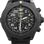 50.00 mm Breitlight case made from a lightweight high-tech polymer that’s been charged with composite fibers for strength and rigidity, screw-locked crown, unidirectional ratcheted bezel, cambered sapphire crystal with glareproof treatment on both sides, Volcano black dial, selfwinding high frequency Breitling B12 movement with date display, chronograph function, 70 hours of power reserve, black Diver Pro III strap with tang-type buckle. Water resistant to 100 m (330 ft).