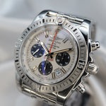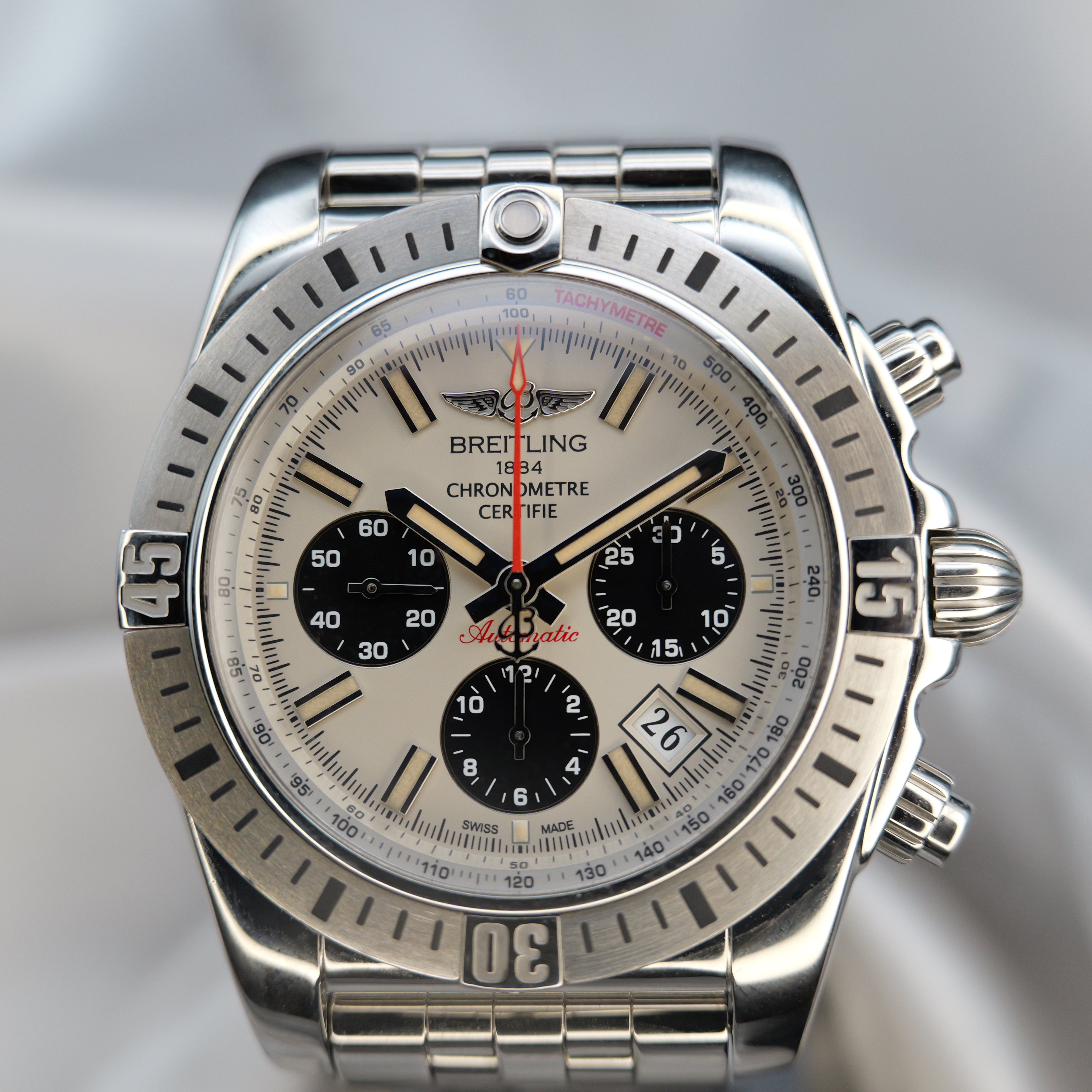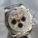 Up for sale is the Breitling Chronomat Airborne AB01154 44MM Panda Dial Stainless Steel with Breitling bracelet with all links, eBay authentication card and aftermarket box. MSRP $9,000. It was recently placed on a timegrapher and is running well. All of our watches are photographed under high intensity light with a macro lens. Any flaws will be significantly magnified. The serial numbers have been blurred for privacy. Timepiece is in excellent condition showing little to no signs of wear, and is located in Indiana.