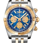 44.00 mm steel and gold case, 16.95 mm thick, screw-locked crown with two gaskets, unidirectional ratcheted bezel, cambered sapphire crystal with glareproof treatment on both sides, metallica blue dial, Breitling 01 (Manufacture) self-winding movement, approximately 70 hrs of power reserve, steel and gold bracelet. Water resistant to 500 m (1,650 ft).