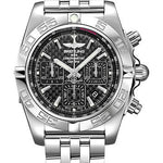 44.00 mm steel polished case, 16.95 mm thick, screw-locked crown with two gaskets, unidirectional ratcheted bezel, cambered sapphire crystal with glareproof treatment on both sides, carbon dial, Breitling 01 (Manufacture) self-winding movement, approximately 70 hrs of power reserve, steel bracelet. Water resistant to 500 m (1,650 ft).