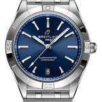 36.00 mm stainless steel case, non screw-locked crown with two gaskets, unidirectional ratcheted bezel, blue dial, Breitling 10 self-winding movement, approximately approx. 42 hours of power reserve, metal bracelet. Water resistant to 100 m (330 ft).