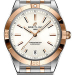 36.00 mm stainless steel and 18K red gold case, non screw-locked crown with two gaskets, unidirectional ratcheted bezel, white dial, Breitling 10 self-winding movement, approximately approx. 42 hours of power reserve, metal bracelet. Water resistant to 100 m (330 ft).