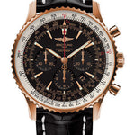 46.00 mm red gold case, 14.50 mm thick, transparent sapphire crystal back, non screw-locked crown with two gaskets, rotating bezel with circular slide rule, cambered sapphire crystal with glareproof treatment on both sides, black/gold dial, Breitling 01 (Manufacture) self-winding movement, approximately 70 hrs of power reserve, black croco strap, tang buckle. Water resistant to 3 bars.