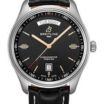 40.00 mm stainless steel case, 11.40 mm thick, non screw-locked crown with two gaskets, cambered sapphire crystal with glareproof treatment on both sides, black dial, Breitling 45 self-winding movement, approximately 38 hours of power reserve, black croco strap, folding buckle. Water resistant to 100 m (330 ft).