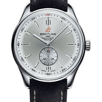 40.00 mm stainless steel case, 11.40 mm thick, non screw-locked crown with two gaskets, cambered sapphire crystal with glareproof treatment on both sides, silver dial, Breitling 37 self-winding movement, approximately 38 hours of power reserve, anthracite nubuck strap, folding buckle. Water resistant to 100 m (330 ft).