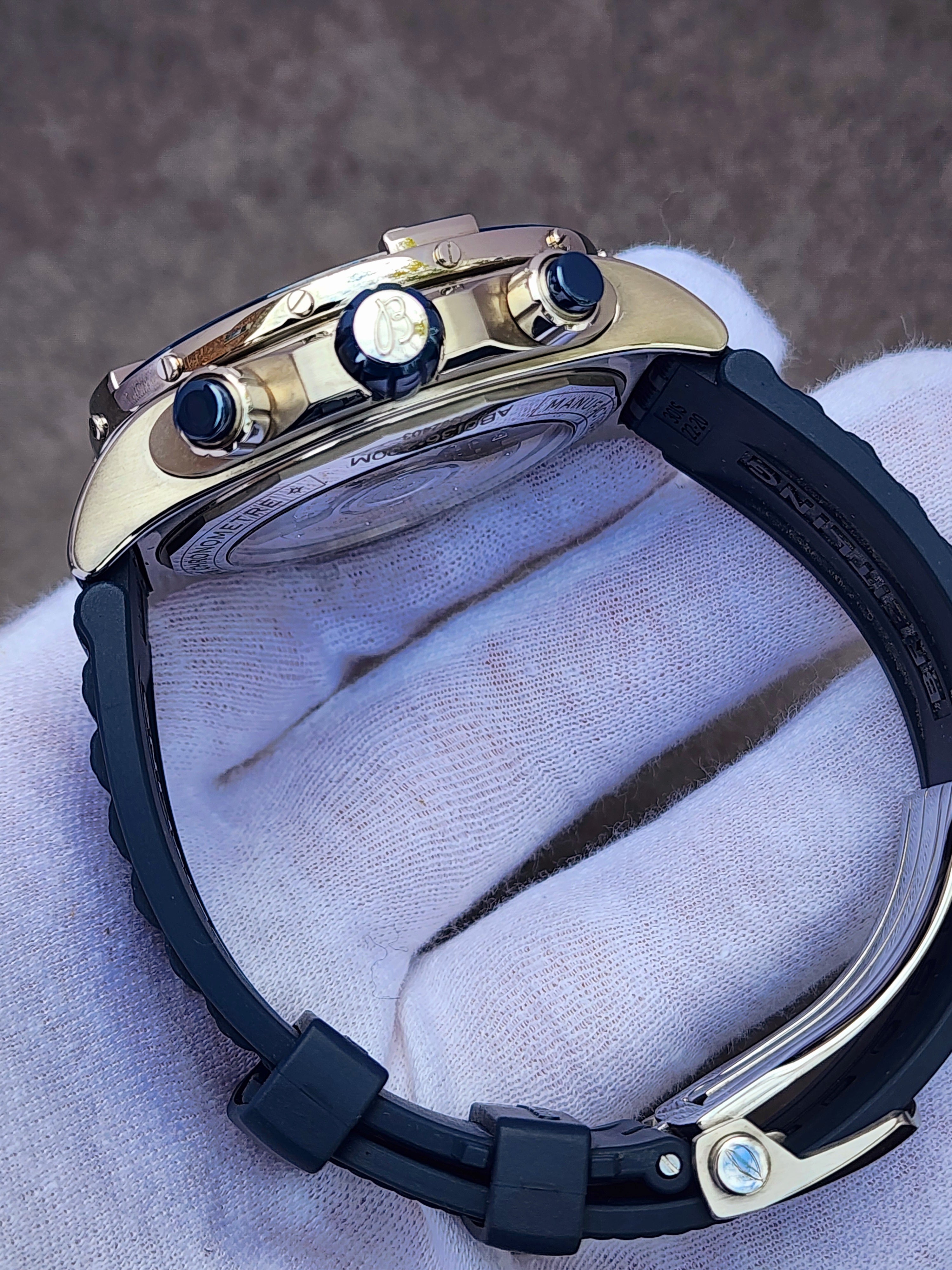 Up for sale is the Breitling Super Chronomat B01 AB0136 44mm with box, Quick Start Guide, Warranty card, & Chronometre tag. Watch is dated 2022. MSRP $10,200. It was recently placed on a timegrapher and is running well. All of our watches are photographed under high intensity light with a macro lens. Any flaws will be significantly magnified. The serial numbers have been blurred for privacy. This timepiece is in very good condition with very minor signs of wear on the case back & bezel. Timepiece is located in Indiana.